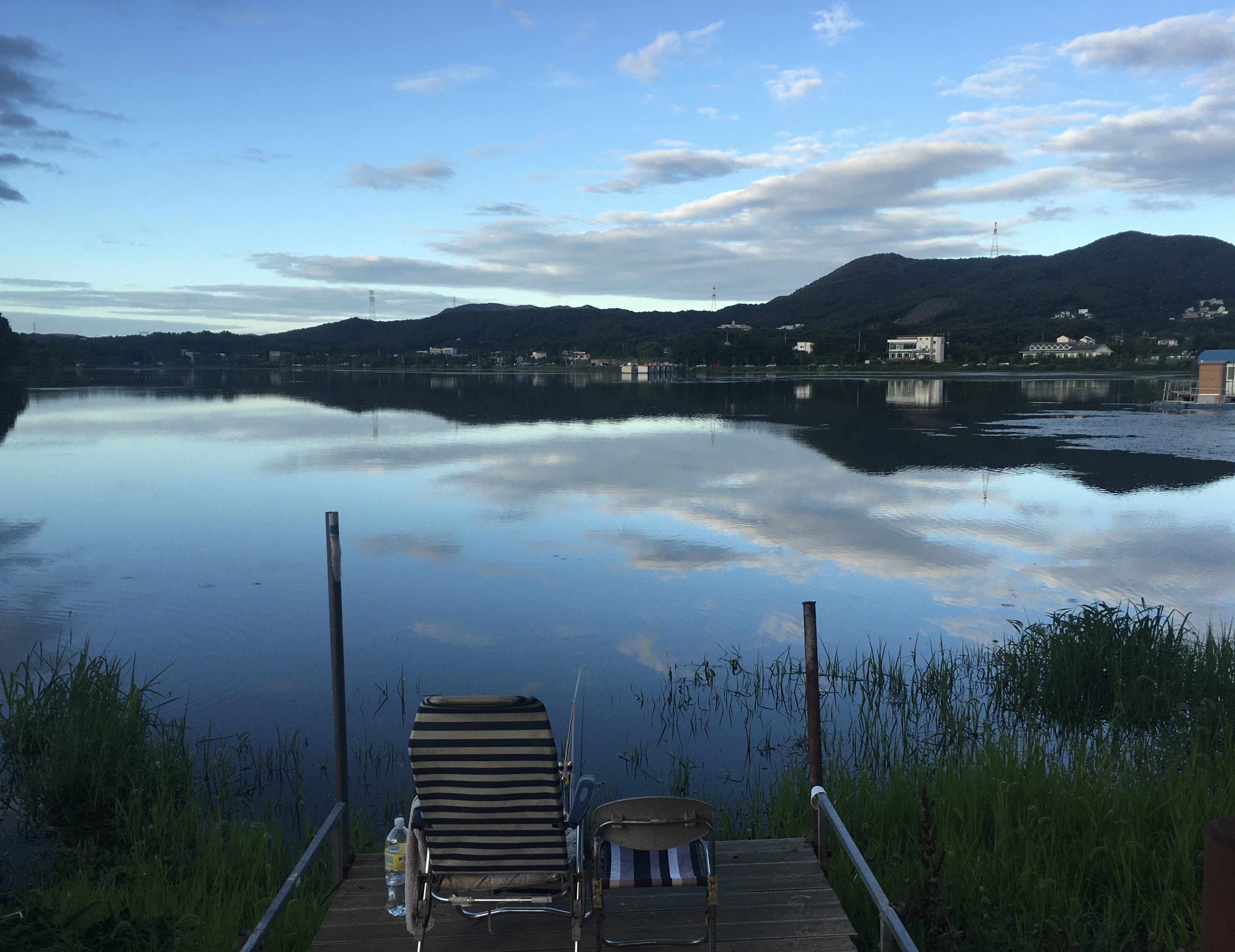 그런데 오늘 아침 우연히 본 용담저수지는 비가 지나간 맑은 하늘과 하얀 구름 그리고 문수산을 담고 있었는데, 이 모습 너무 예쁘지 않은가.