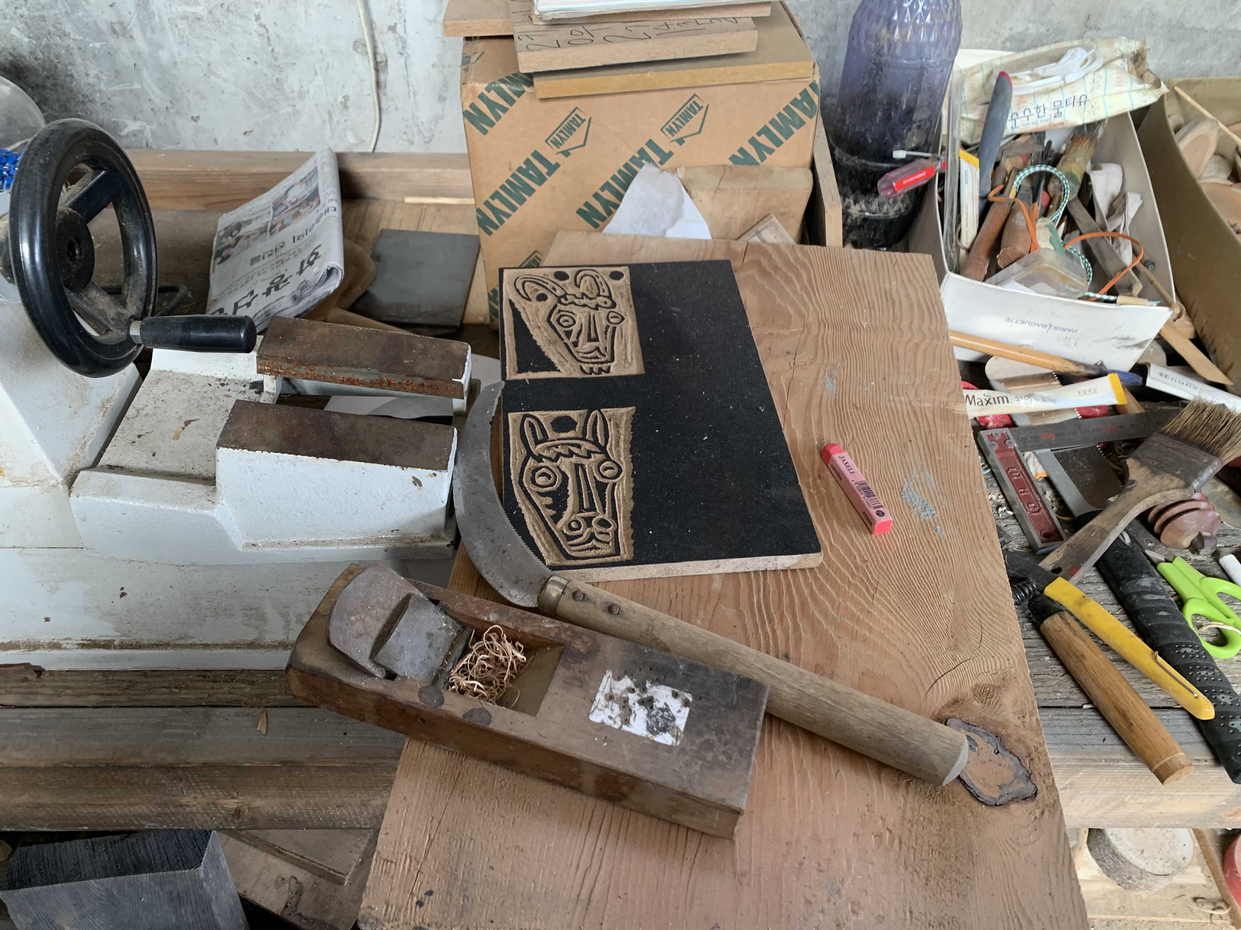올라가니 판화프레스가 딱!!!