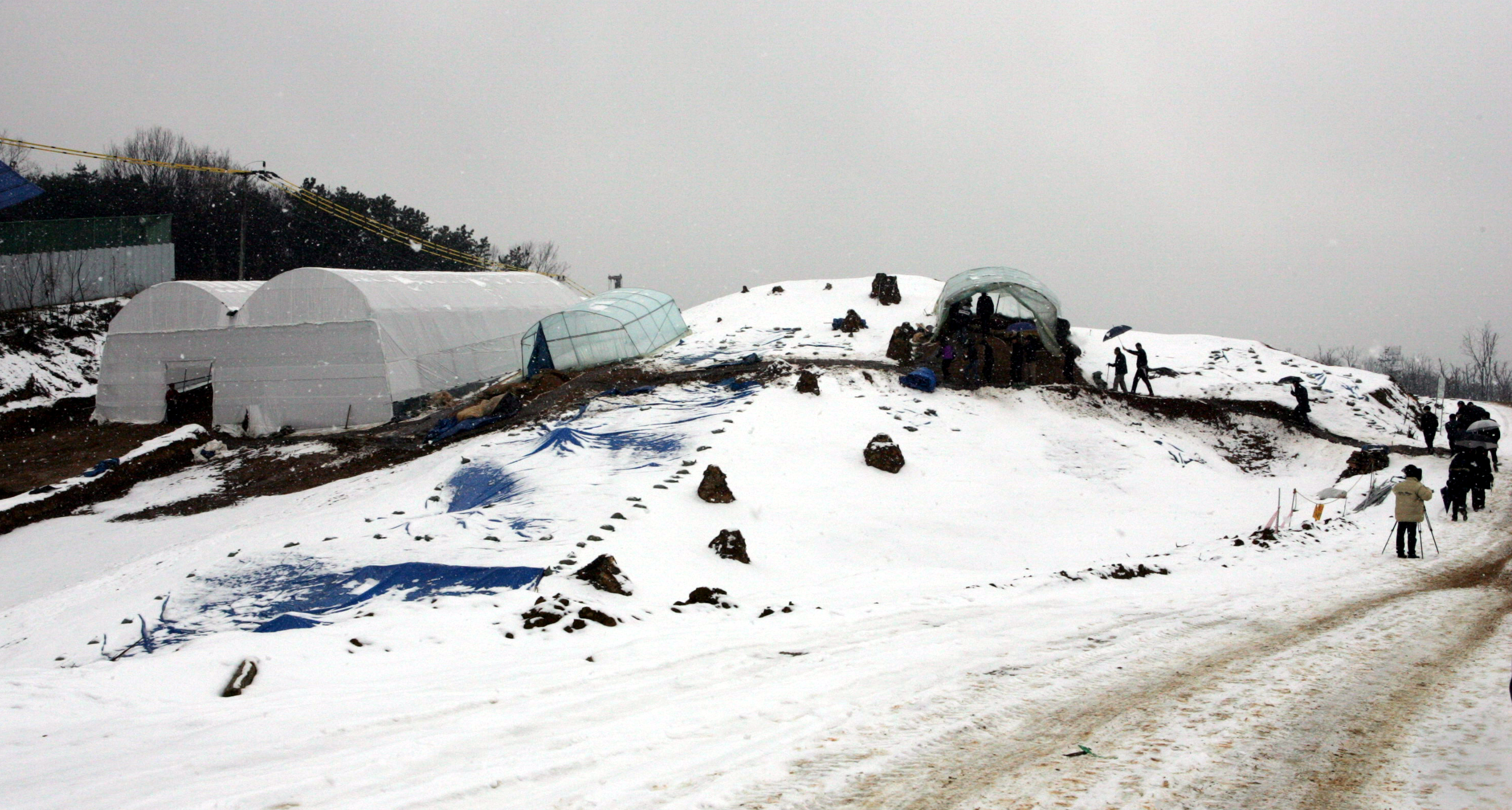 (서울=연합뉴스) 김태식 기자 = 2008년 1월 22일. 한겨울 함박눈이 펑펑 내리는 성남 판교 신도시 건설현장 한복판에서 난데없는 '비닐하우스 발굴설명회'가 열렸다.