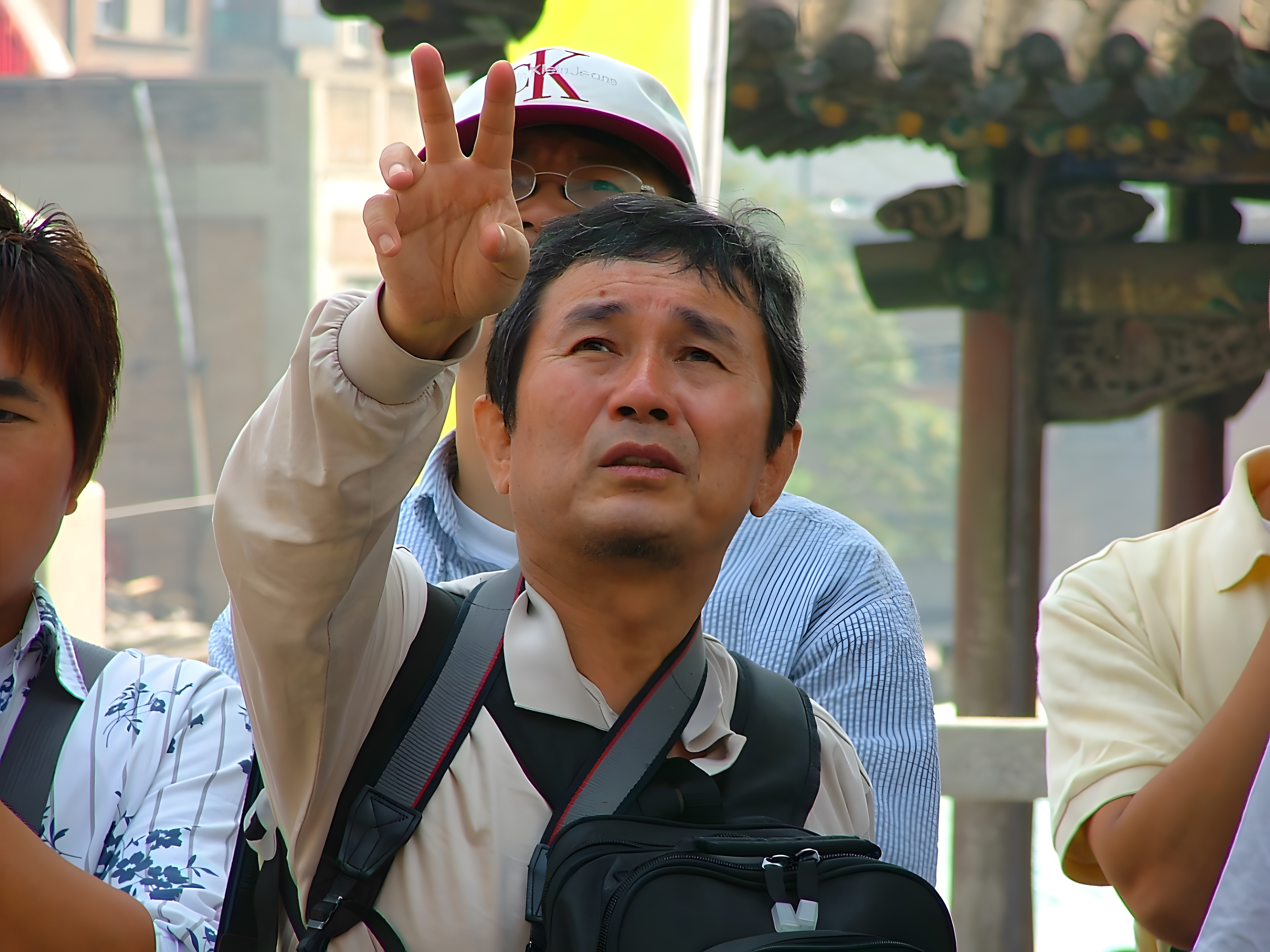 이에 첨부하는 저들 사진이 바로 그 장면이다. 이 무대가 아마도 내 기억에는 대동 상화엄사 아닌가 하는데, 두목 김 교수가 김왕직 박사를 비롯한 제자들을 거느리고 해당 건축물을 설명하는 장면을 포착한 것이어니와, 모두가 하늘을 쳐다본다. 이 행태가 하도 이상해서 나는 매양 나보다 젊은 친구들한테는 “너희는 어째 매양 하늘만 쳐다보누?” 하는 핀잔을 준 기억이 지금도 생생하다.