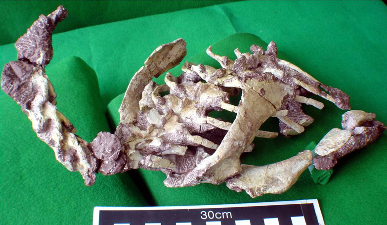 (서울=연합뉴스) 김태식 기자 = 한국공룡연구센터에는 학명이 '코리아노사우루스 보성엔시스'(Koreanosaurus boseongensis)인 공룡뼈 1점이 전시 중이다. 2004년 천연기념물 418호인 전남 보성군 비봉리 공룡알 화석산지에서 전남대 허민 교수팀이 발굴했다. 머리가 없는 이 조각류 초식 공룡은 몸길이 1.5m에 비록 머리뼈는 없지만 목뼈에 갈비뼈와 앞다리뼈가 연결된 상태로 발견됐다.