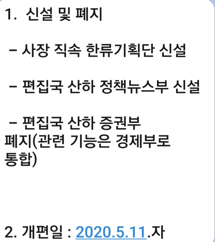 한류기획단이 신설됨에 따라 제가 그 초대 단장으로 갑니다.