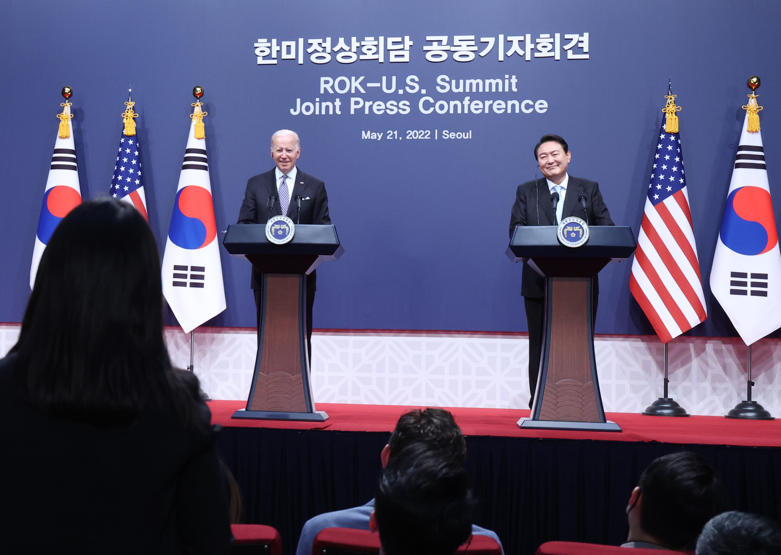 (서울=연합뉴스) 류지복 특파원 류미나 김서영 기자 = 21일 한미정상회담 공동기자회견 말미에 윤석열 정부 내각의 '남성 편중' 현상에 대한 미...