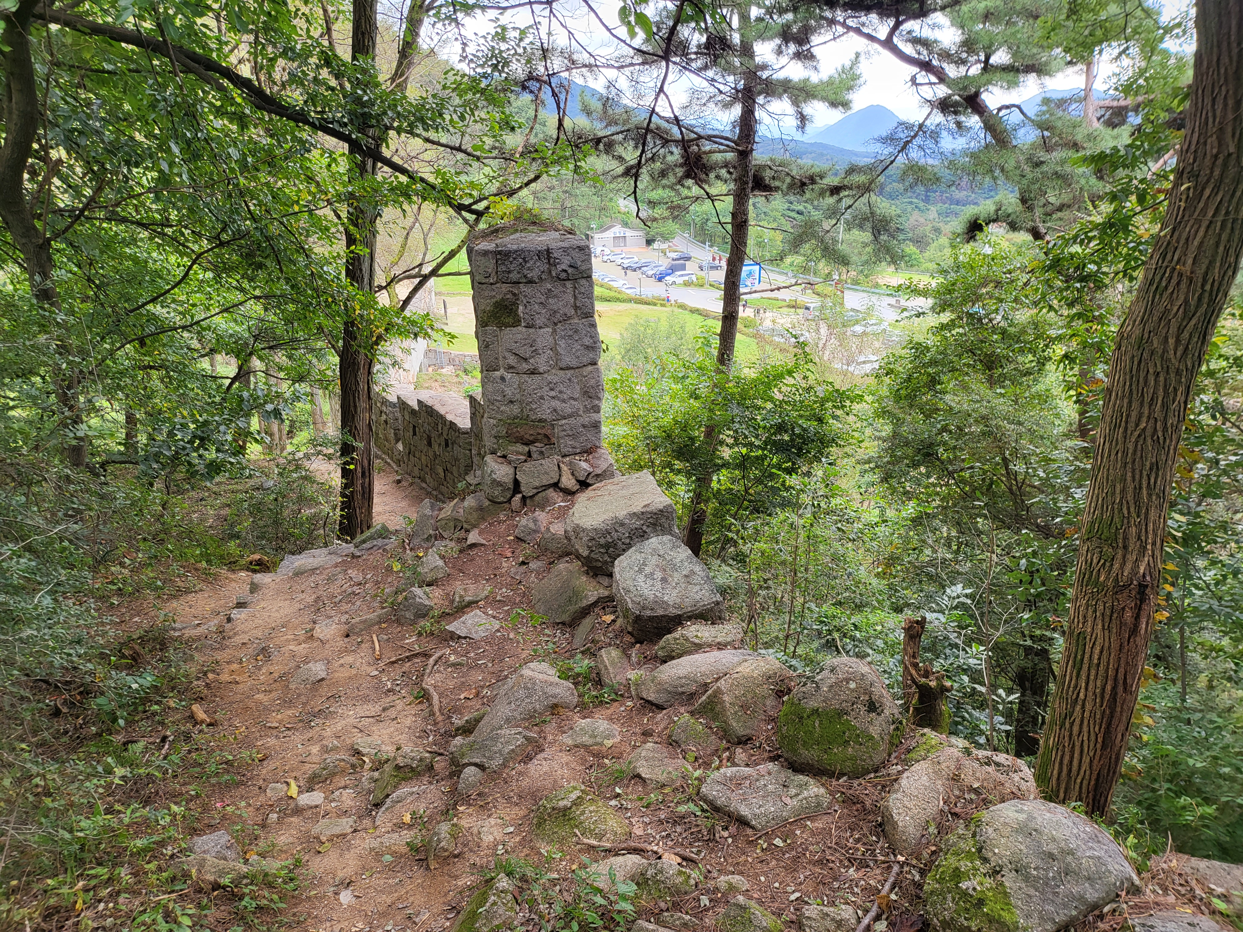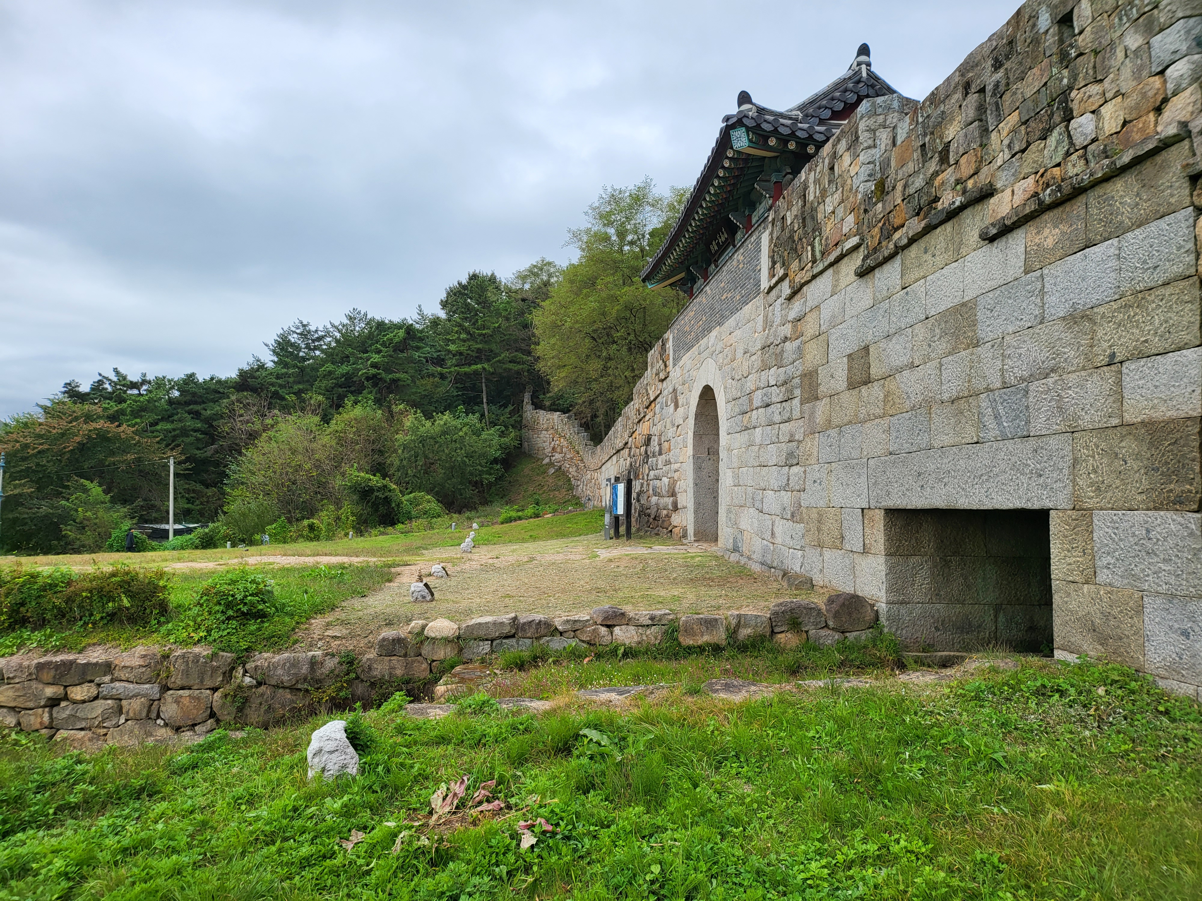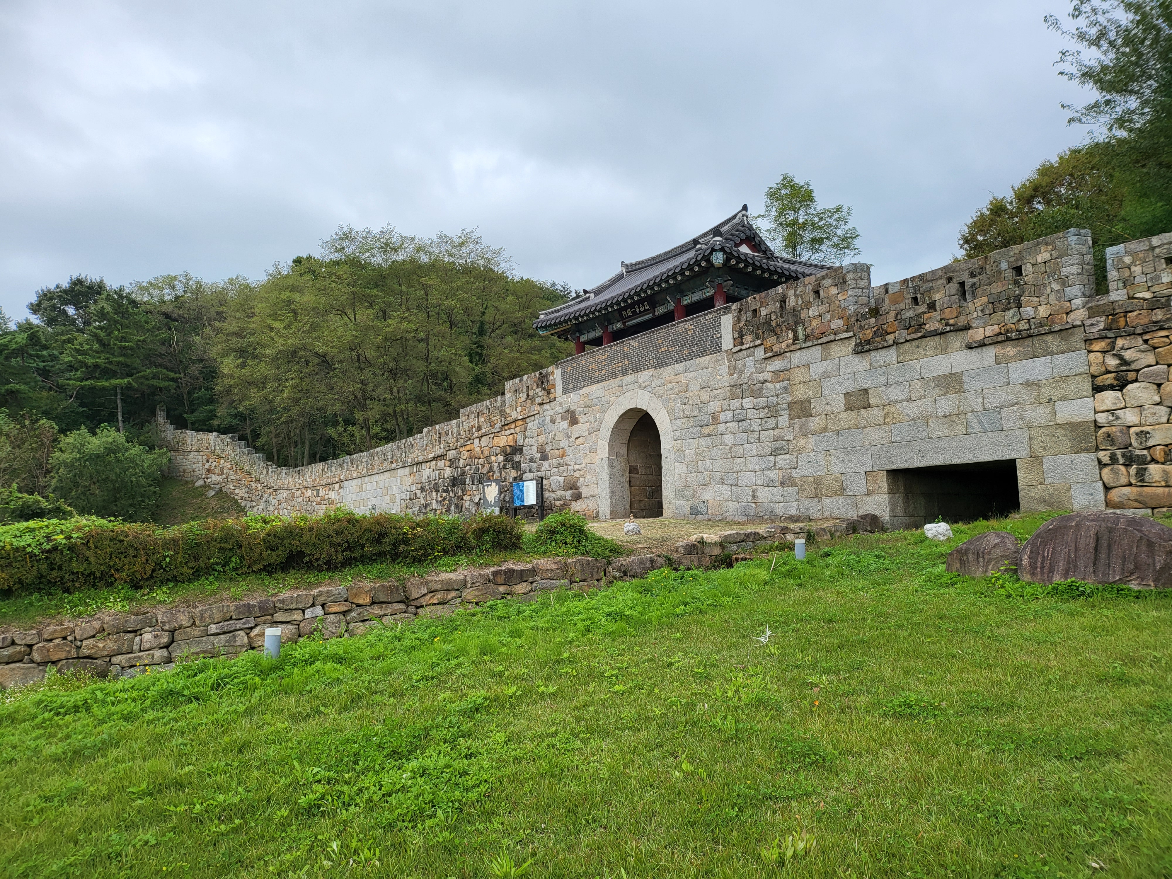 막상 현장서 안내판 보고선 둘레 11키로라 해서 완주는 단념하고 복원 구간과 본래하는 지점이 적절히 섞인 남문 구간과 그 인근 폐허가 된 성벽 구간 일부만 맛뵈기로 봐둔다.