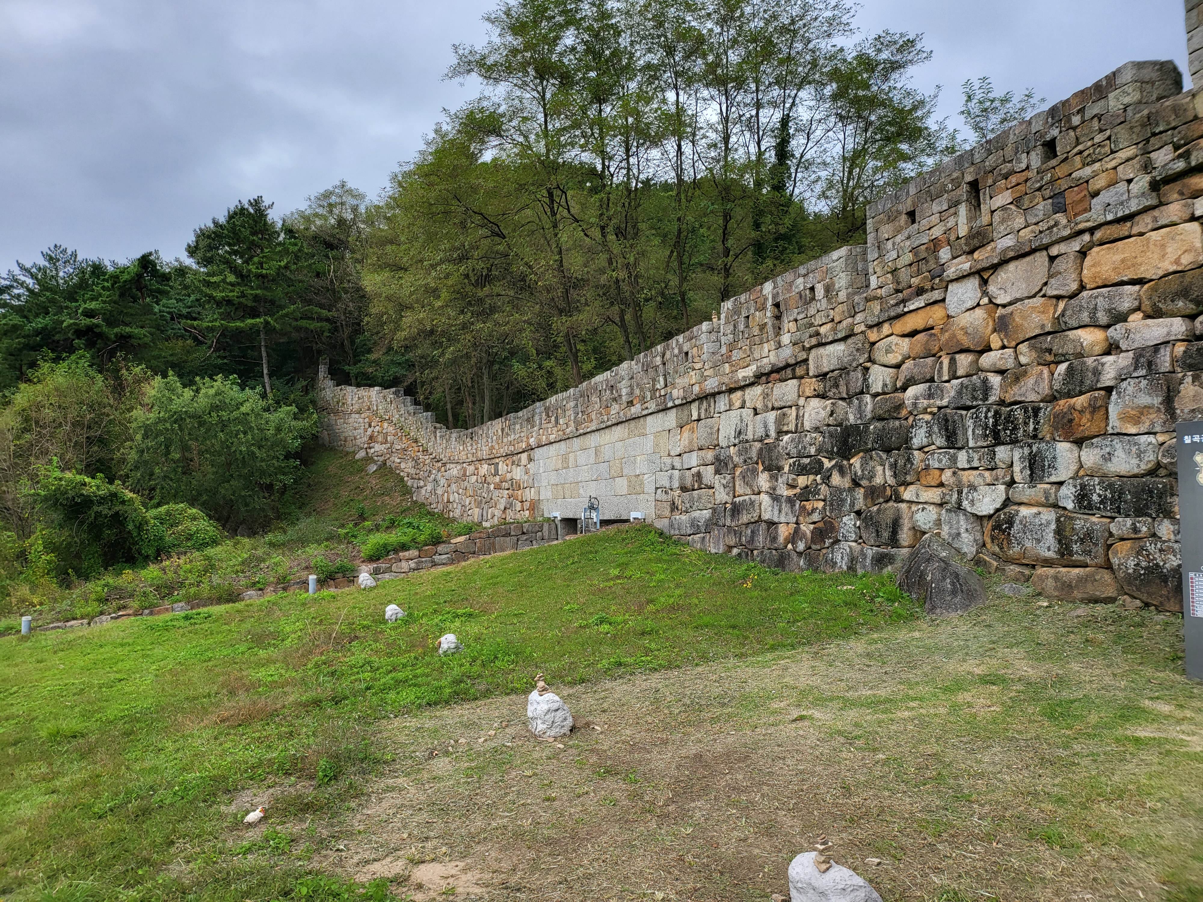 막상 현장서 안내판 보고선 둘레 11키로라 해서 완주는 단념하고 복원 구간과 본래하는 지점이 적절히 섞인 남문 구간과 그 인근 폐허가 된 성벽 구간 일부만 맛뵈기로 봐둔다.
