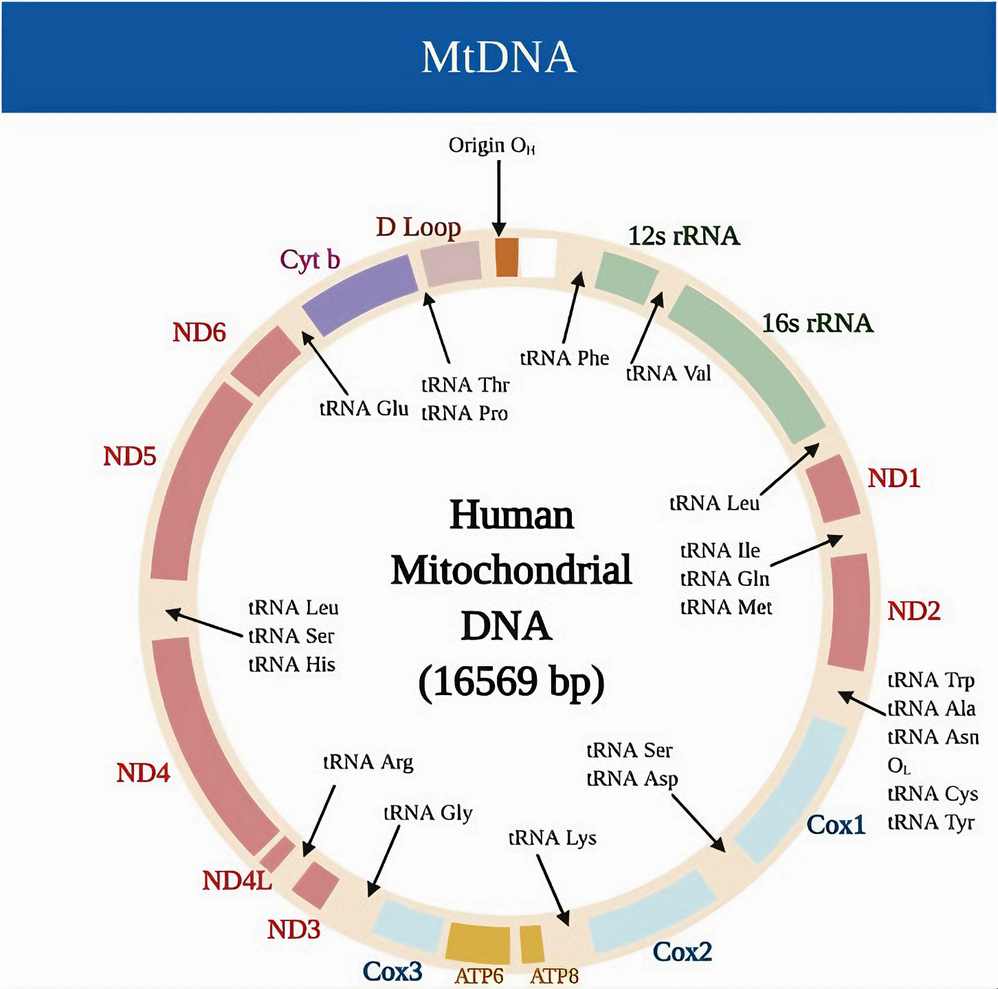 위 그림을 보면 미토콘드리아 DNA 전체 구조가 나와 있는데