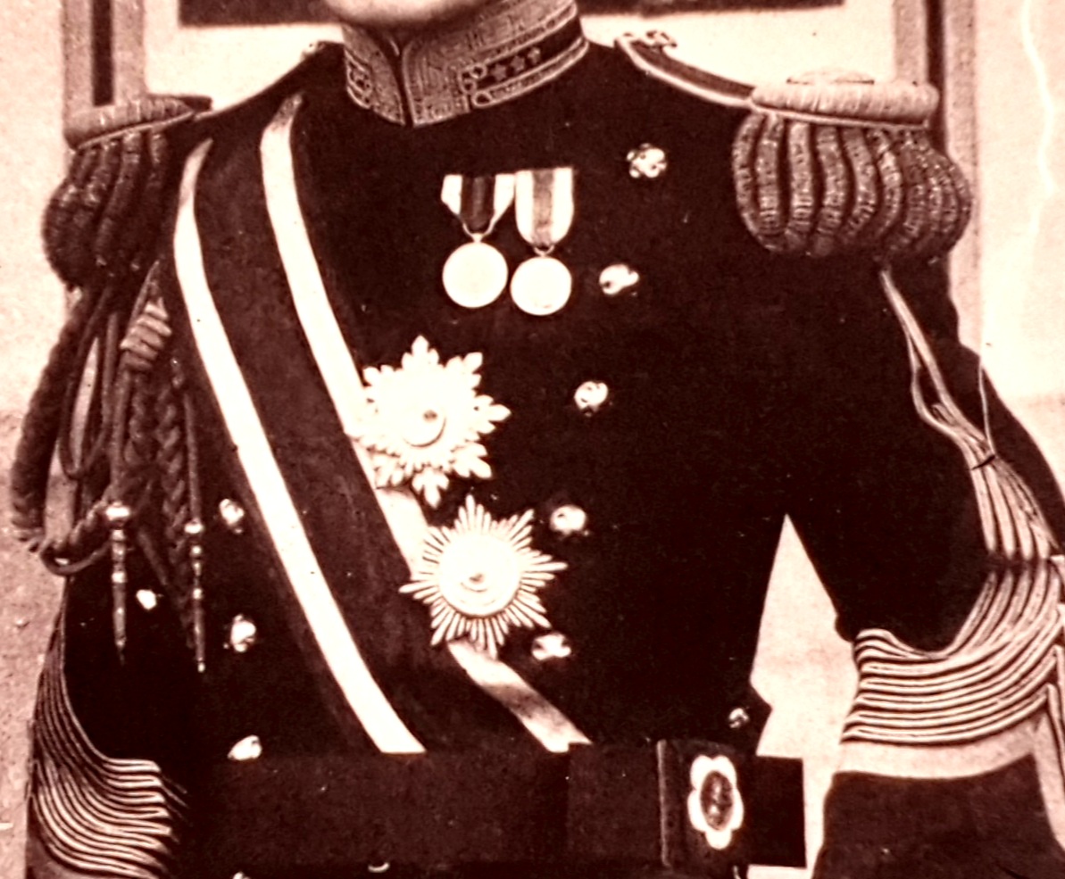 지금 이 사진 복장은 1900년 7월에 개정된 형태로 그 이전에는 앞 중심선에서 여며지면서 가로로 5줄 늑골장식이 있는 늑골복 형식이었다가 이 시기부터 두 줄 단추 자켓으로 바뀝니다.