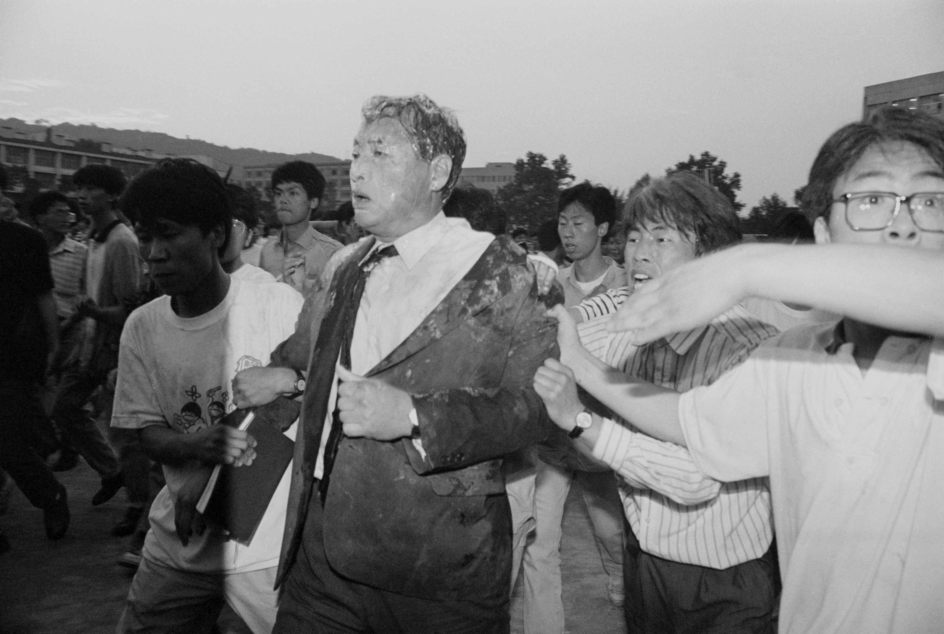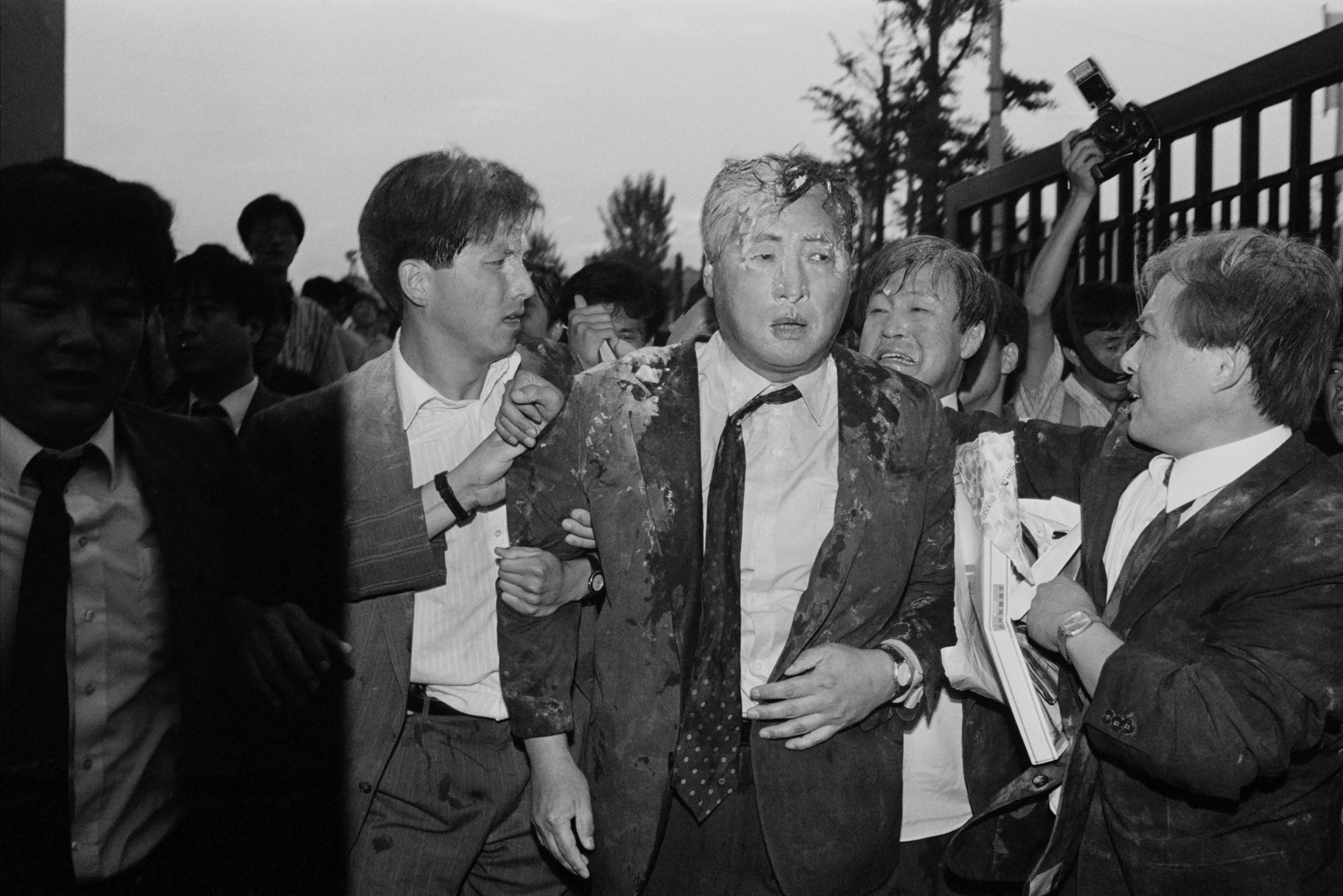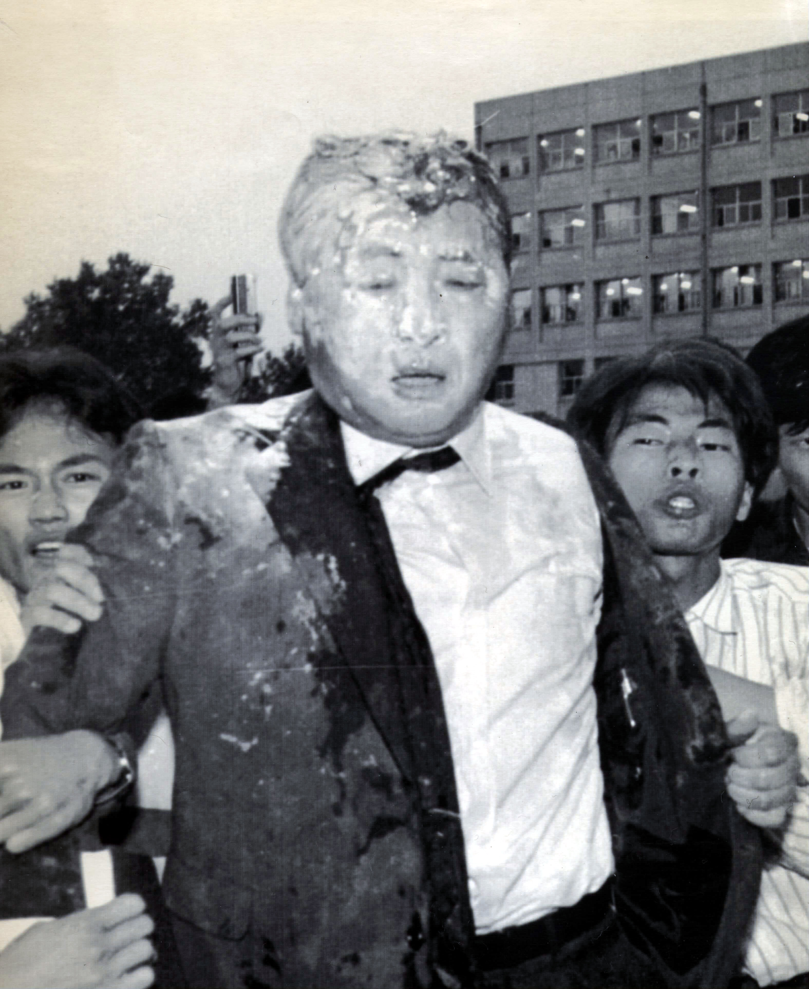 鄭총리서리가 건물밖으로 끌려나오자 일부학생들이 밀가루 세례를 퍼부었으며 鄭총리서리는 안면이 계란과 밀가루로 범벅이 된채 학생 7-8명에 어깨, 멱살 등을 잡힌채 운동장을 가로 질러 1백여미터를 끌려 나왔다.
