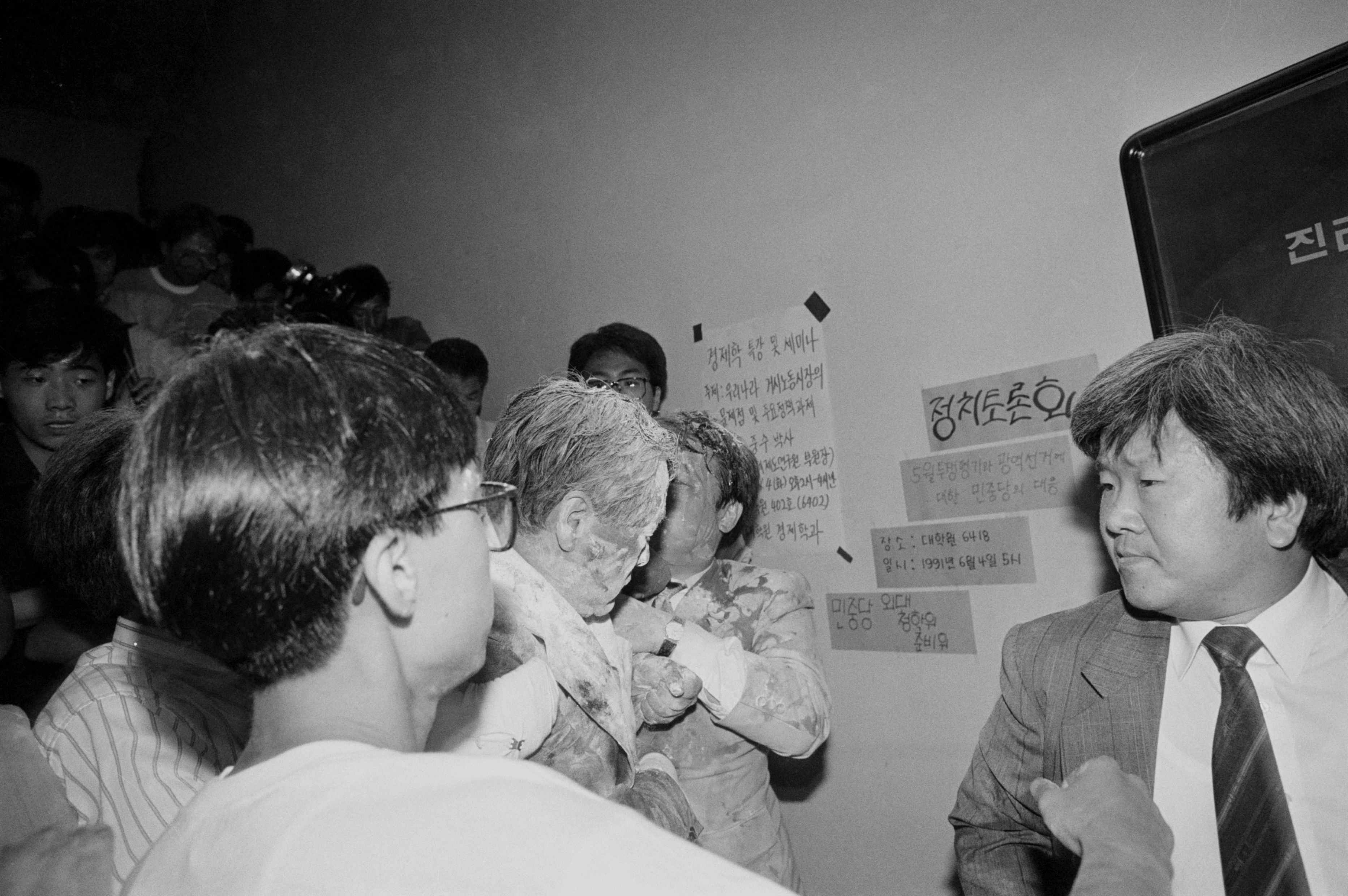 鄭총리서리는 강의실 문을 잠근채 20여분간 학생들의 농성이 끝나기를 기다렸으나 일부 흥분한 학생들이 7시40분께 강의실문을 박차고 들어가 鄭총리서리에게 밀가루세례를 퍼부었다.