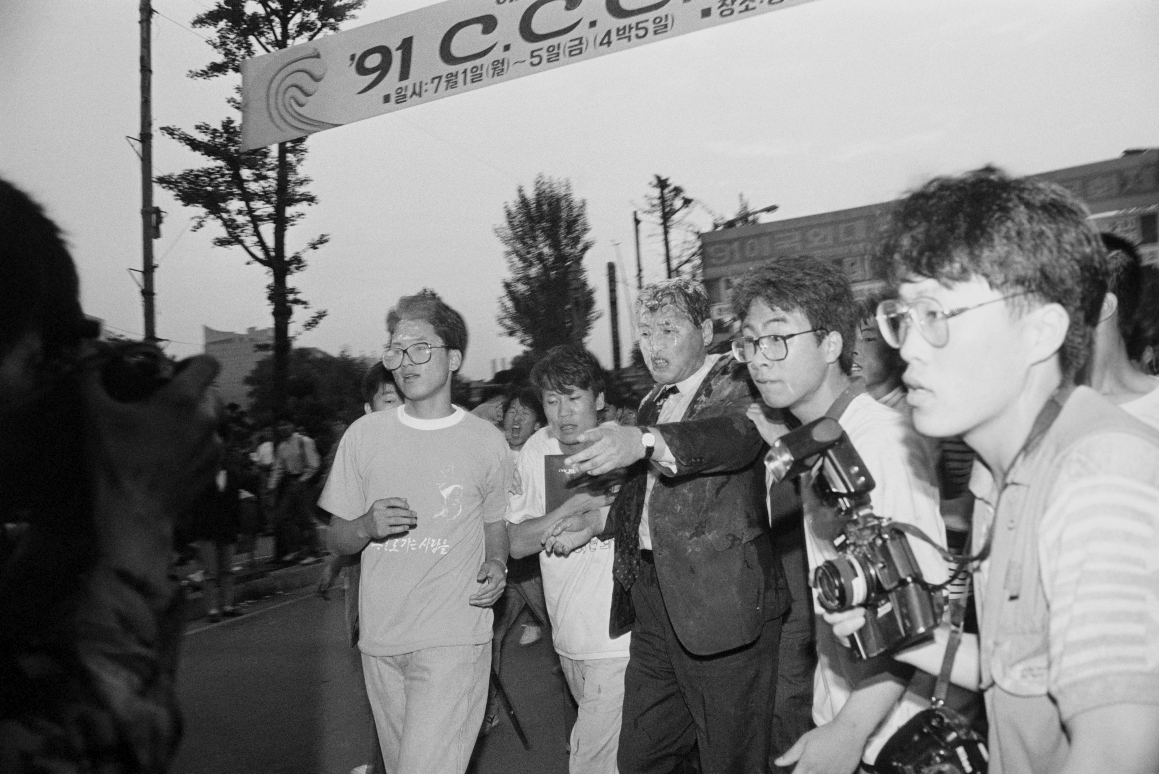 鄭총리서리가 끌려 나오는 동안 학생 3백여명이 뒤따르며 "전교조 탄압주범 정원식을 몰아내자" 등의 구호를 외쳤으며 흥분한 학생 일부는 鄭총리에게 심한 발길질과 주먹질을 했다.