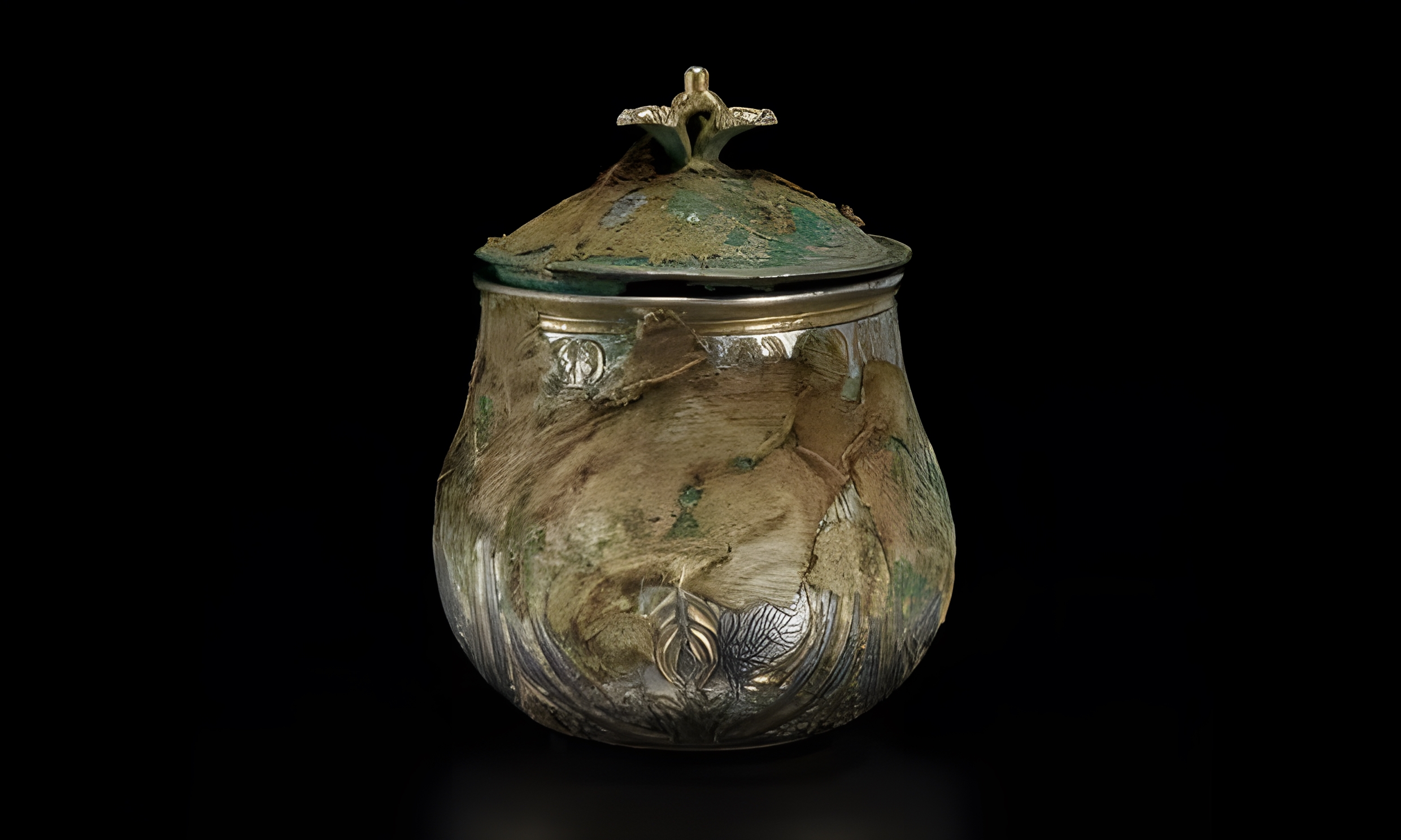 이 유물은 스코틀랜드에서 발견된 바이킹 시대 갤러웨이 보물 Galloway Hoard 목록에 포함된 뚜껑이 있는 은제 용기다.