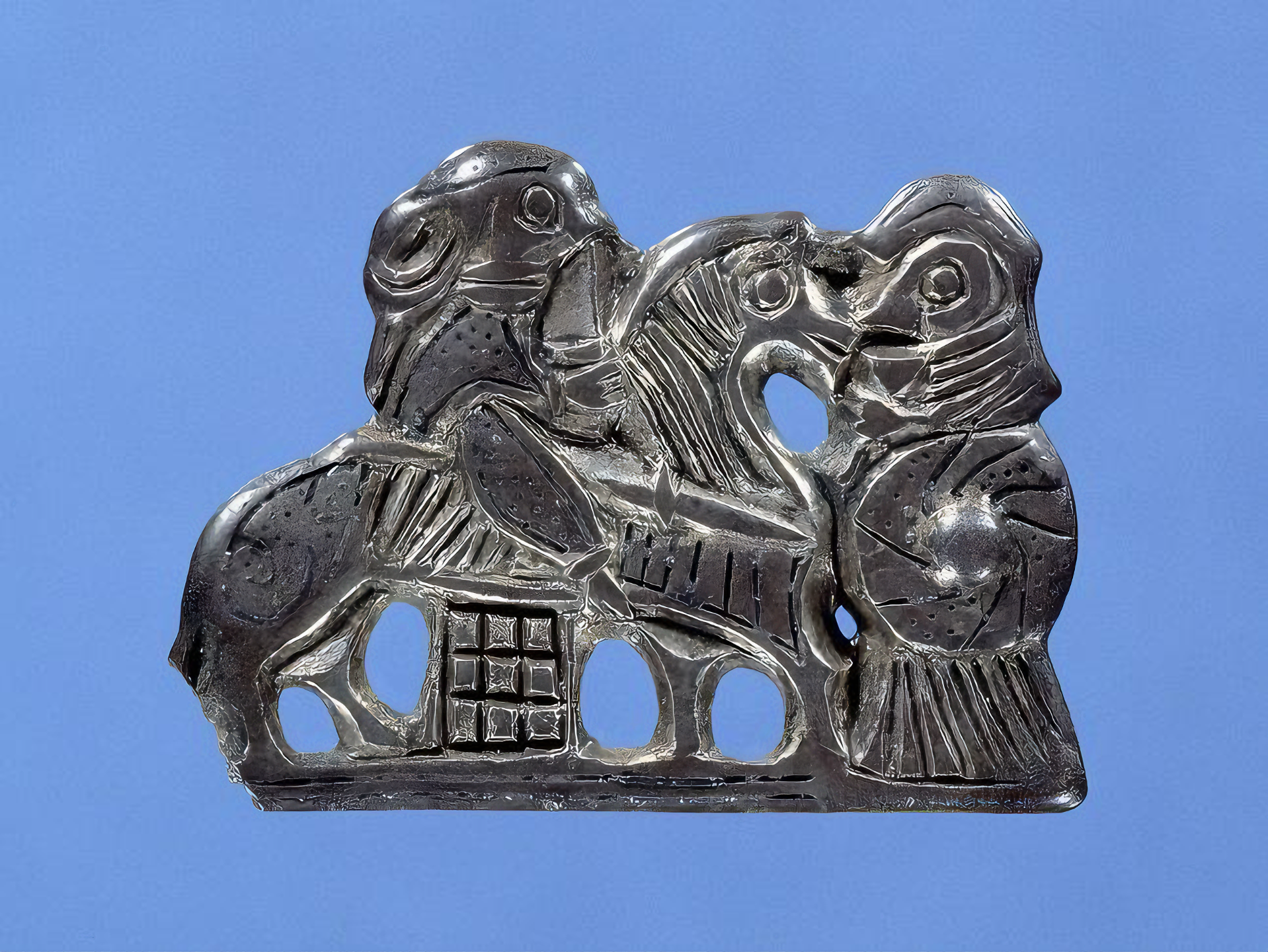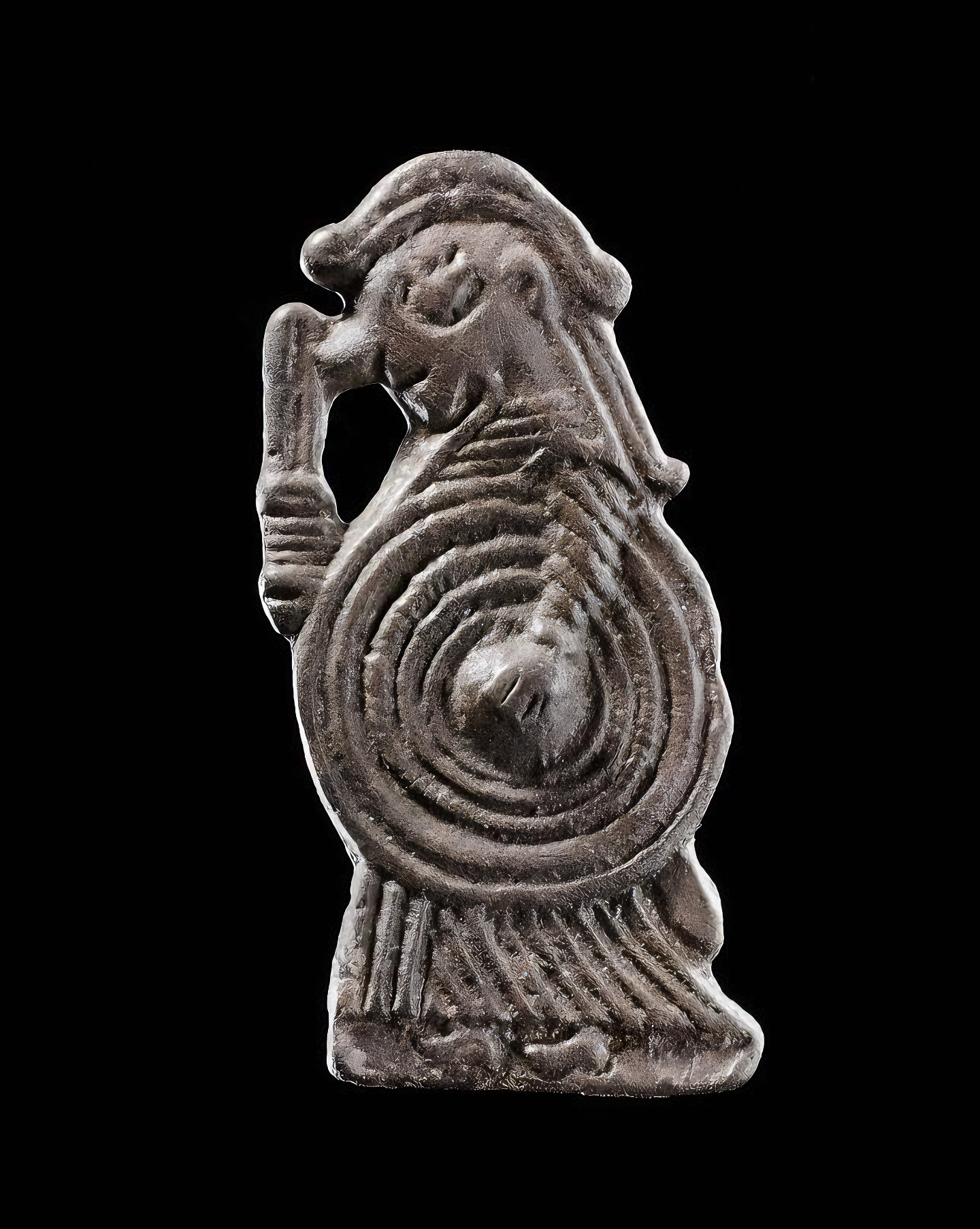 방패 두상은 죽은 자의 마지막 여정에 방패가 함께한 무덤에서 흔히 발견된다.