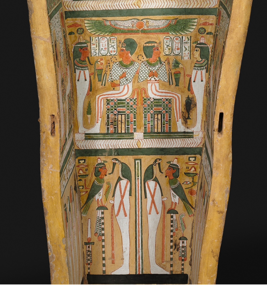 원래는 이 외부 관 안에 또 다른 작은 관이 있었고, 그 안에 고인은 미라 판 mummy board 과 함께 쉬었을 것이다.