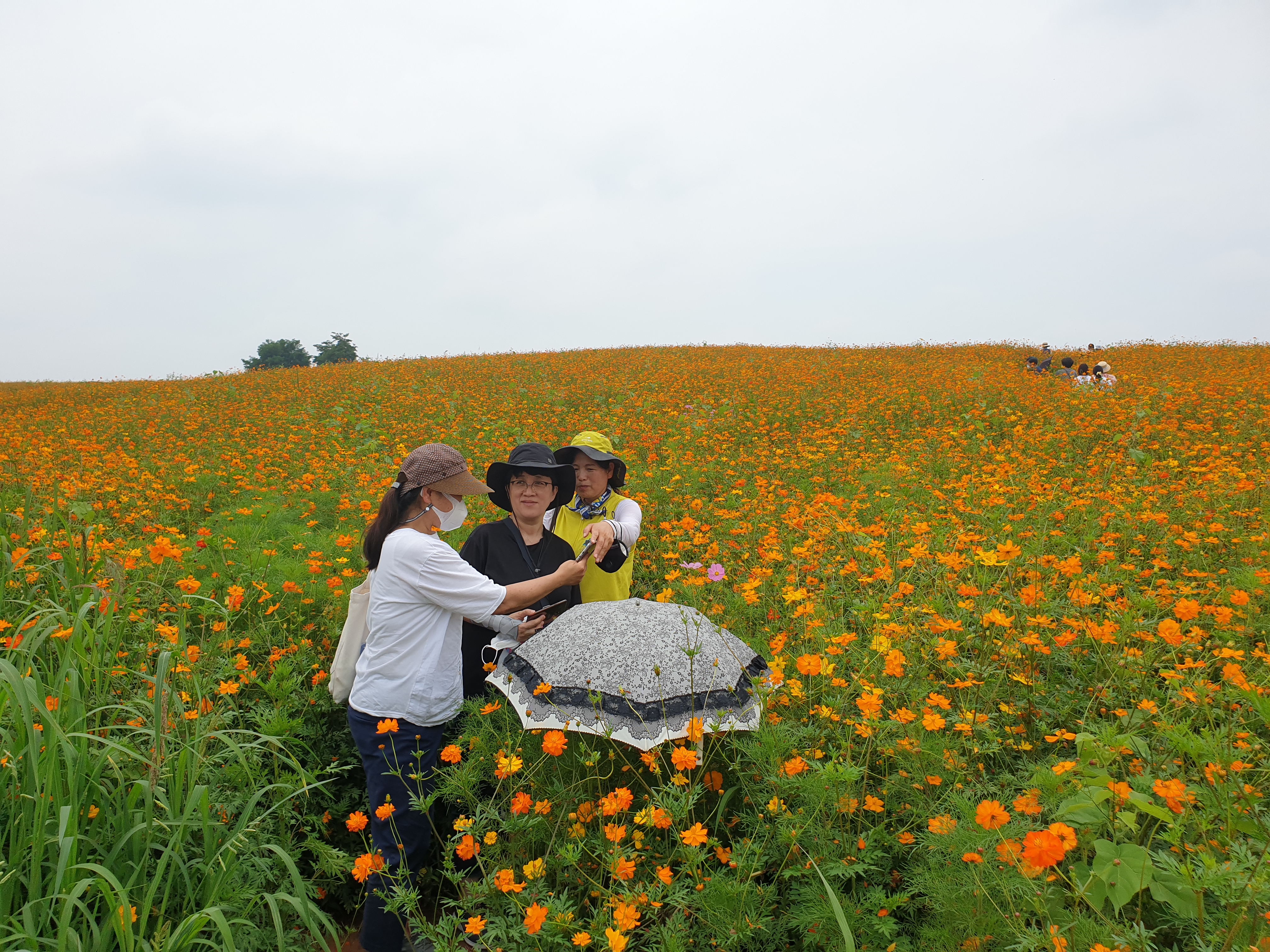 라벤더 라벤더 하는데, 이리 많은 라벤더가 한창 그 특유한 뒷골을 땡기는 향내는 발산하고, 그 뒤로 거대한 노랑의 물결이라, 그래 전라도 땅 장성이 옐로시티를 지향한다며 온통 동네를 노랑색으로 장식하고 있거니와, 그런 장성이 보면 울고갈 해바라기와 미국 코스모스가 빚어내는 옐로 플라워 파티가 흔연한 꽃농장이 펼쳐진다.