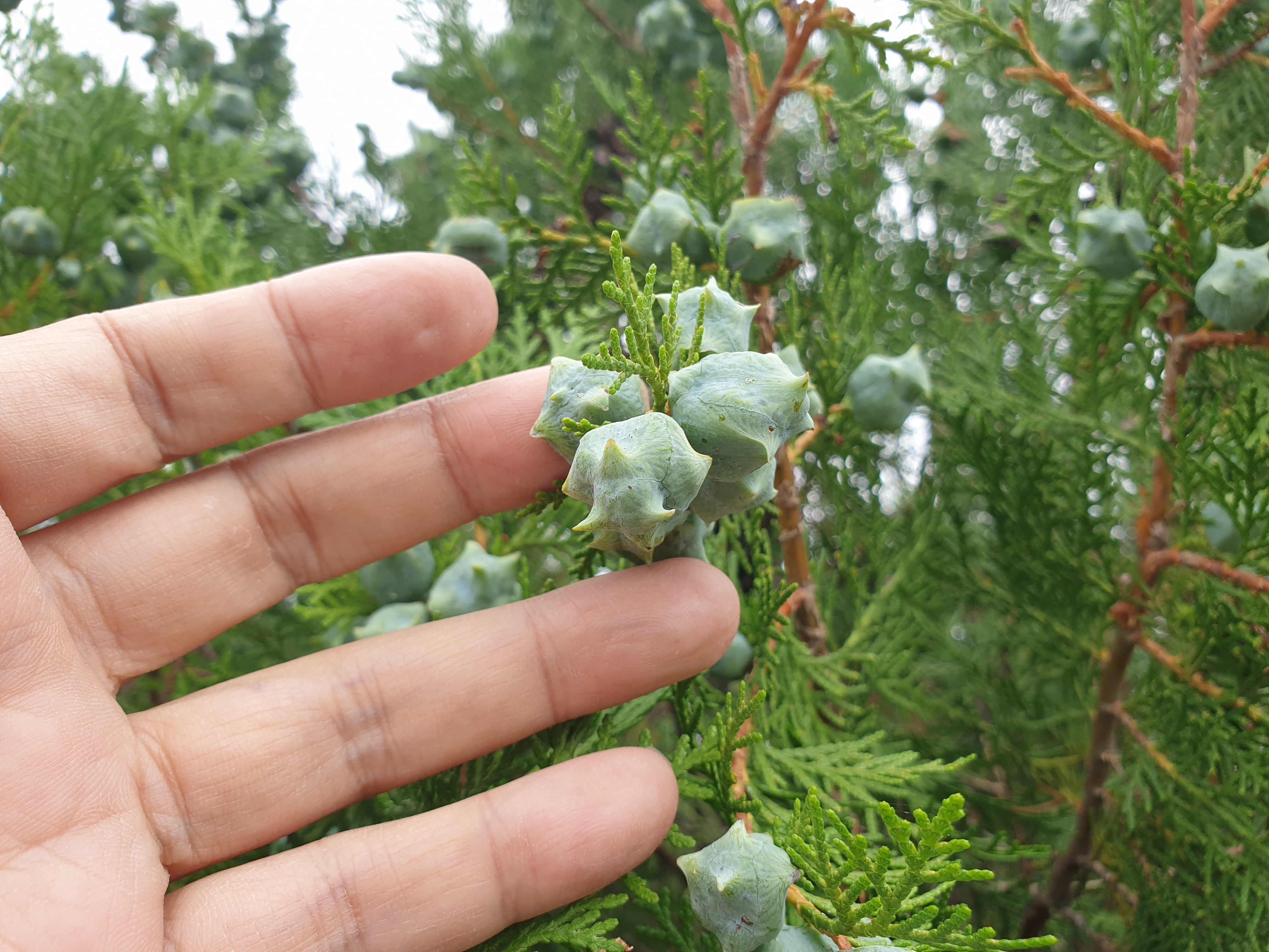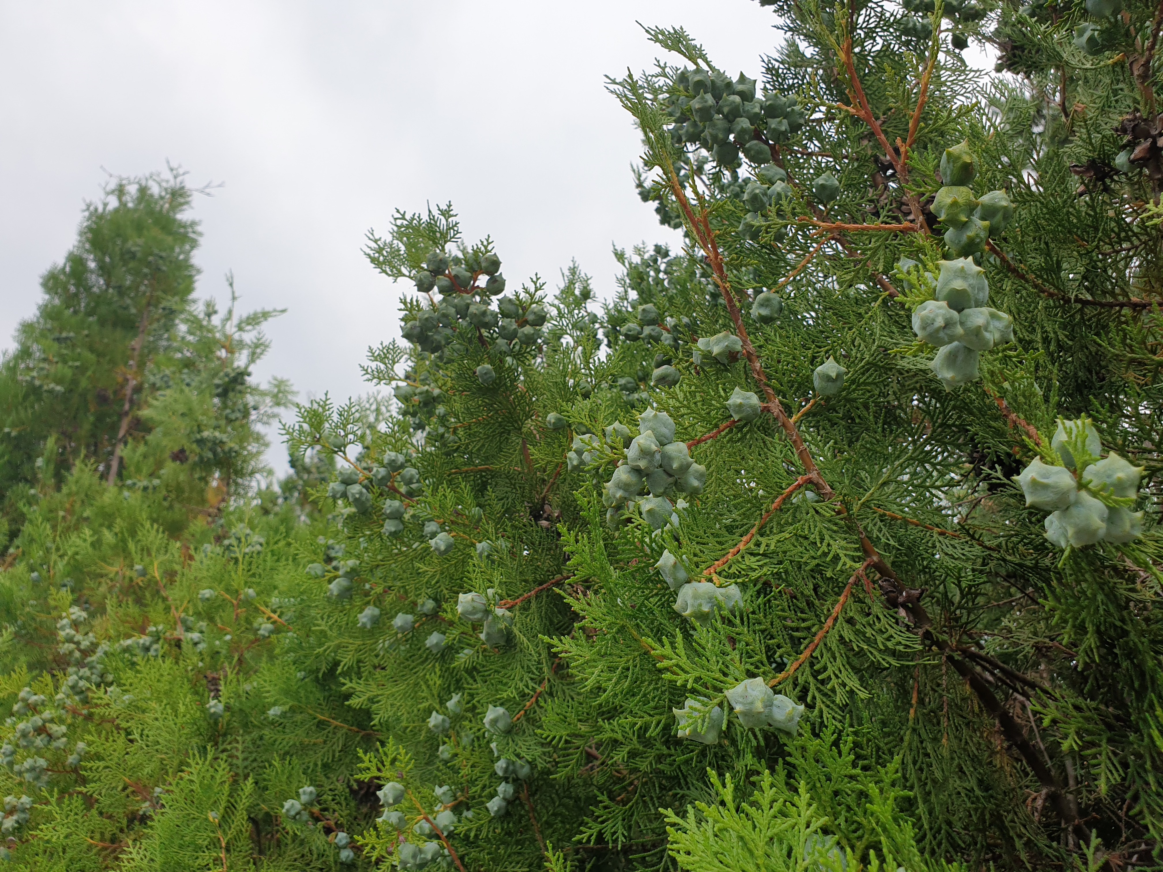 입구 찾아가는데 측백나무로 담장을 둘러쳤고 저 뒤로는 마천루처럼 솟은 고층 측백나무들이 보인다.