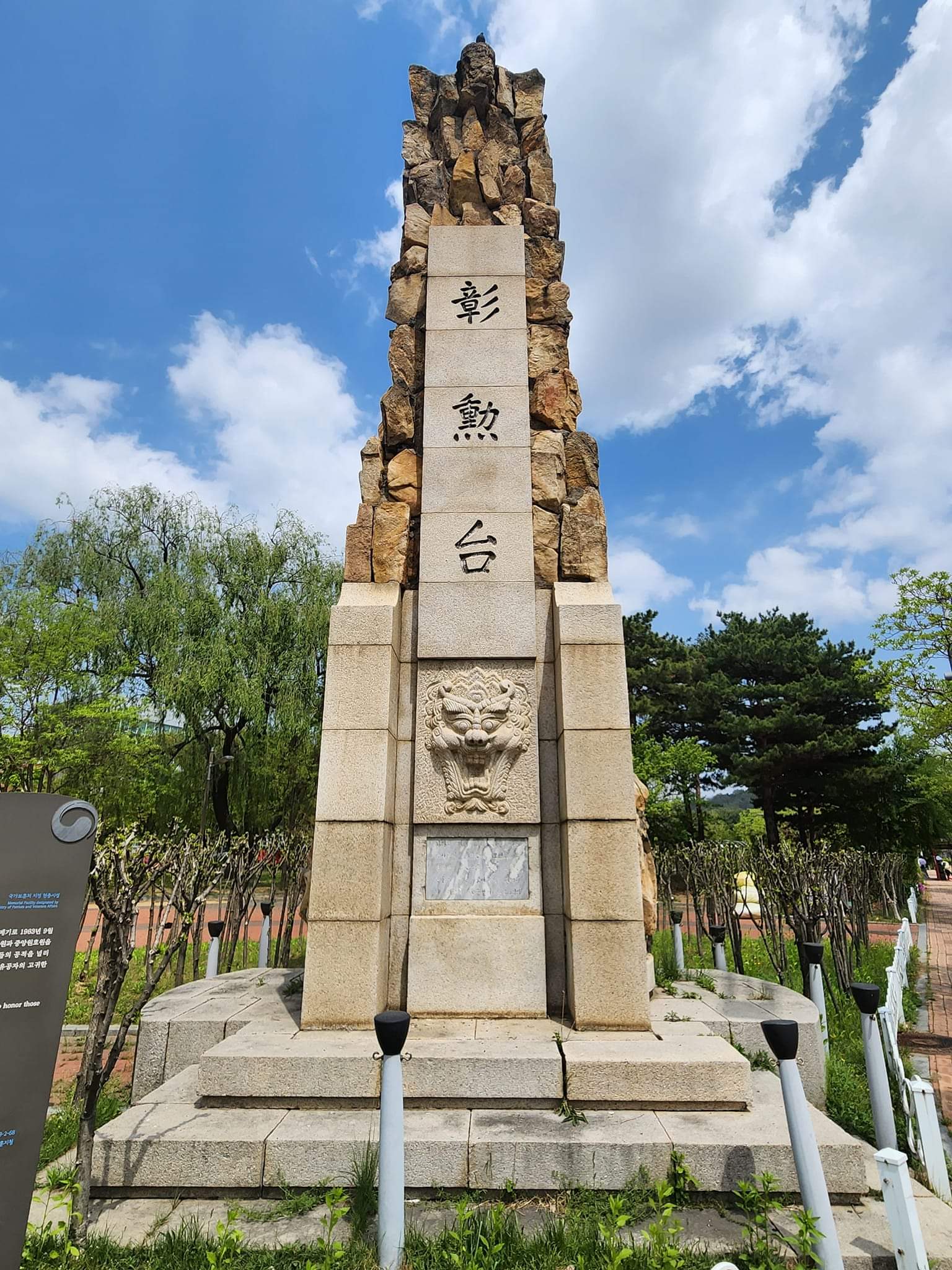 뒷면에는 "이 厖大한 歷史的 搖藍 彰勳臺는 國家再建最高會議 議長 朴正熙 將軍이 下賜하신 基金으로 建立되다 1963年 9月 25日 援護處長 尹永模"라는 문구가 새겨져 있다.