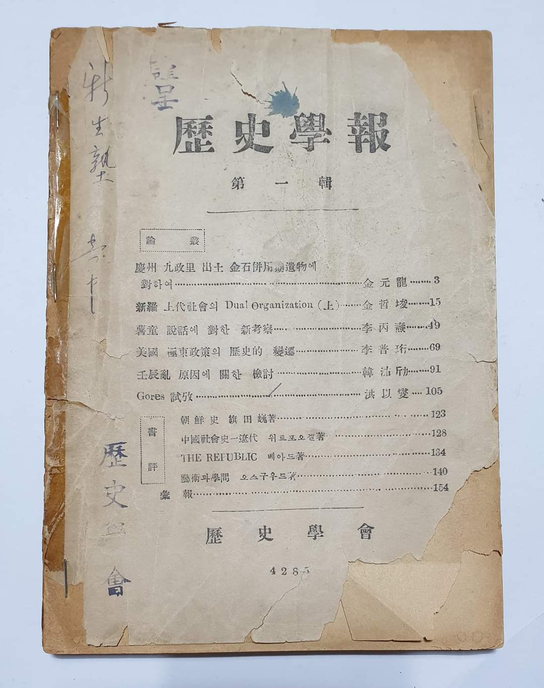 1) 1952년, 아직 전쟁이 한창일 때 창설된 역사학회의 학회지 <역사학보>의 창간호다. 아마 PDF로는 많이 보셨겠지만 실물 표지는 처음 만나는 분도 적지 않으시리라.