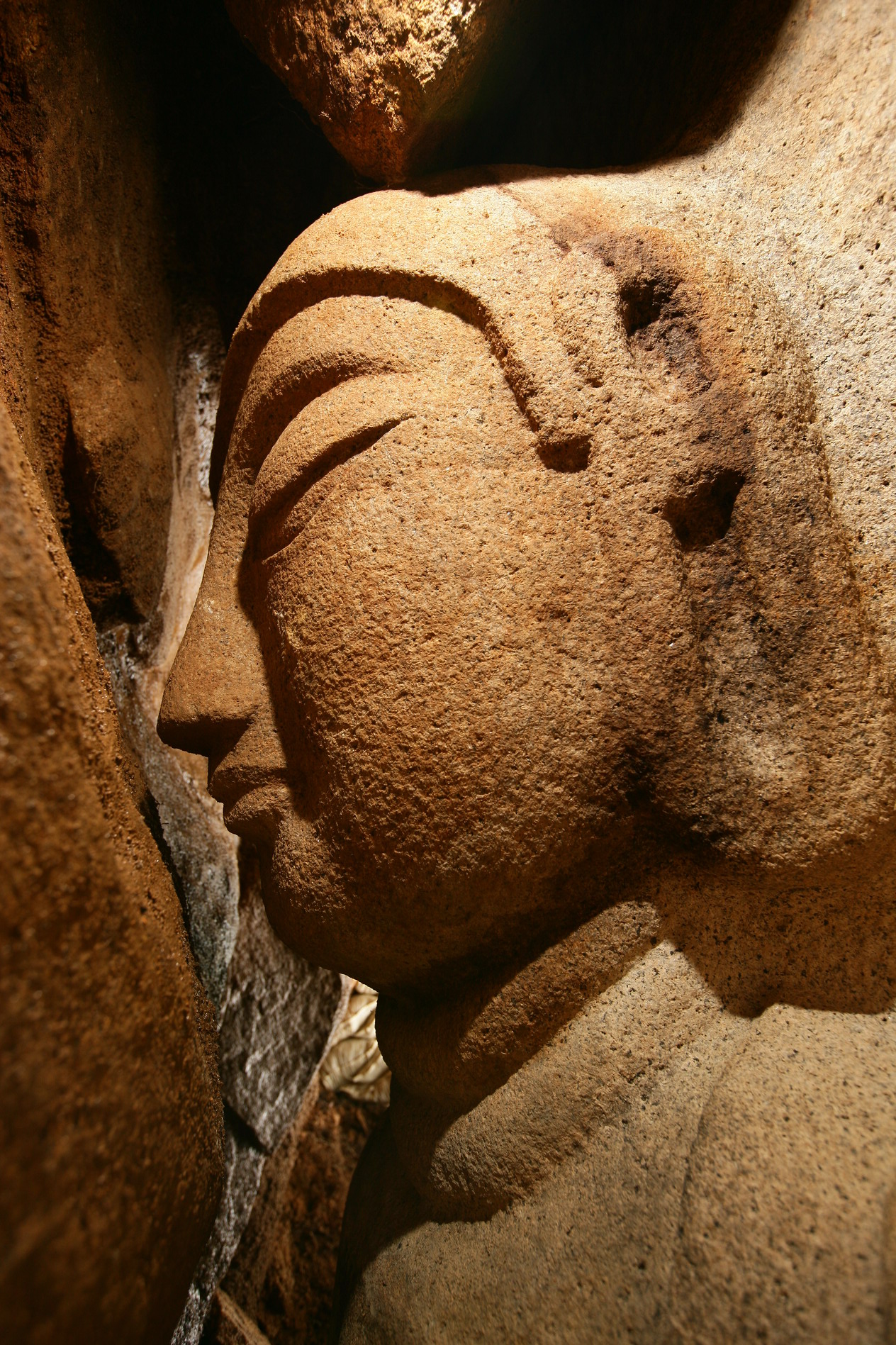발견 지점 상단 암벽에서 붕괴해 그대로 얼굴을 아래로 박고 곤두박질치다 암석에 걸려 정지한 상태로, 예서 관건은 그 마애불 코가 멀쩡했는데, 그 코가 암벽과 떨어진 거리가 불과 5㎝밖에 되지 않는다는 사실이었다. 하마터면 얼굴을 다 갈아버릴 뻔했다.