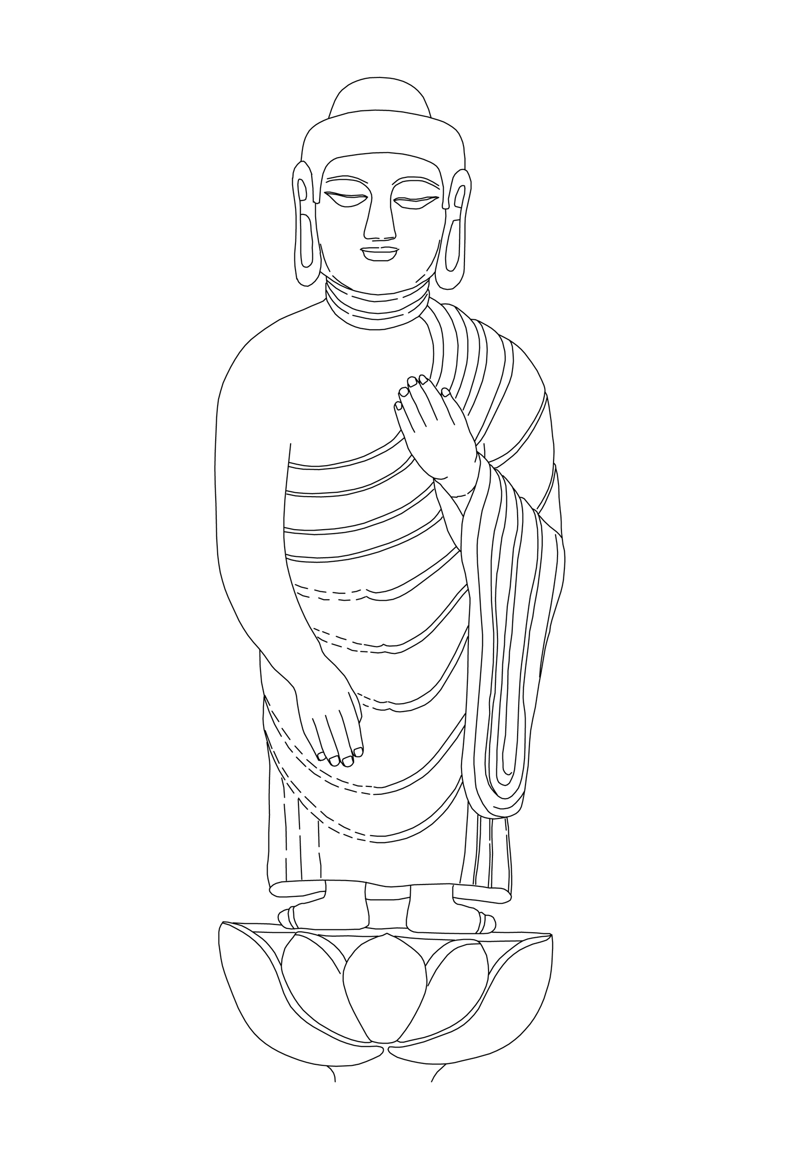 이 불상은 보고 당시 암석(약 610 x 250 x 190cm, 약 70톤) 면을 이용해 고부조高浮彫(최대 약 30cm) 한 형태로 그에 새긴 불상은 석가모니 여래로 추정하고 그 높이는 대략 500cm다.