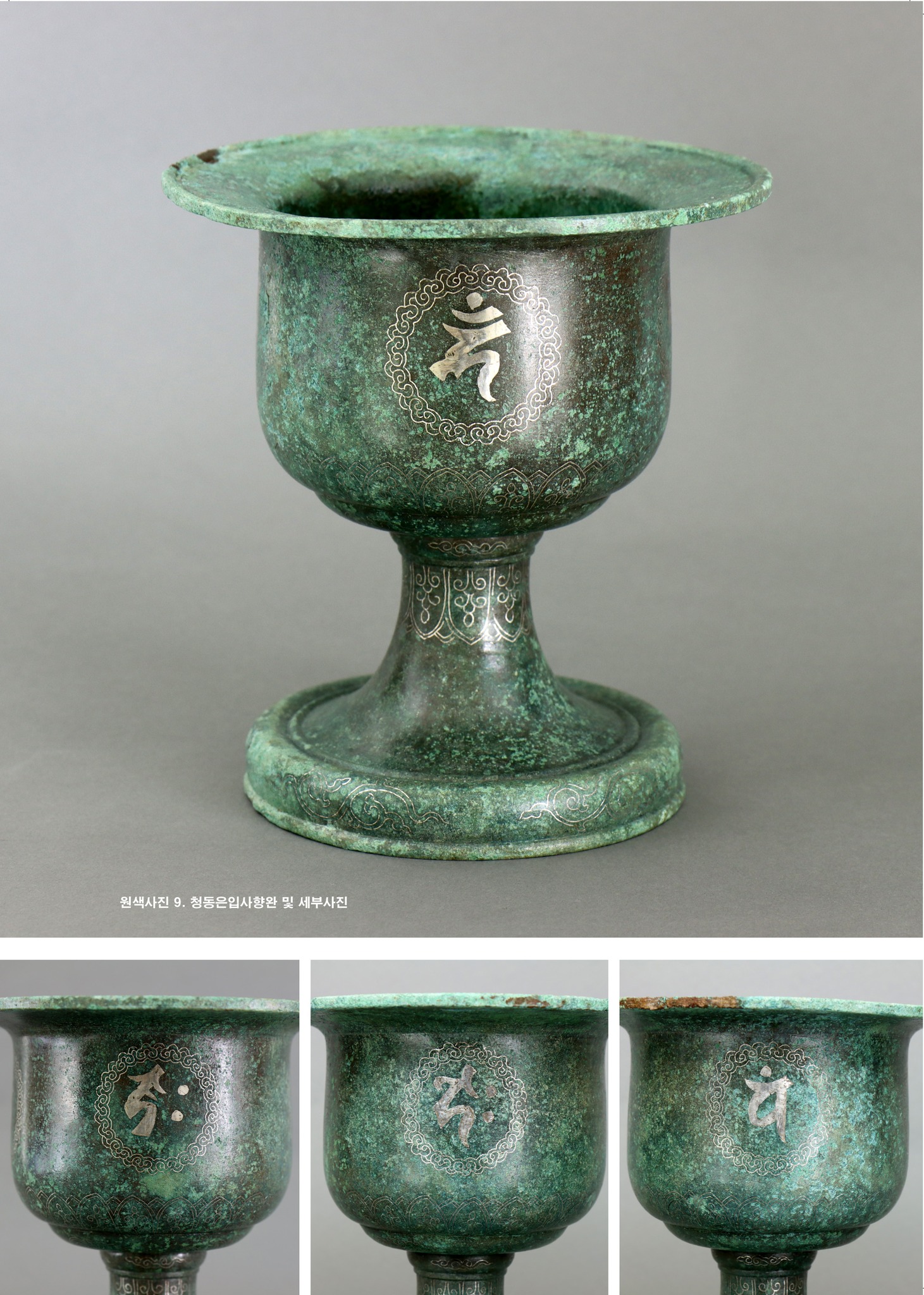 차순철 선생에 의하면 강화 창리 산167-1번지 유적 2-1구역 고려시대 2호 건물지 출토 은입사 범자문향완 이랜다.