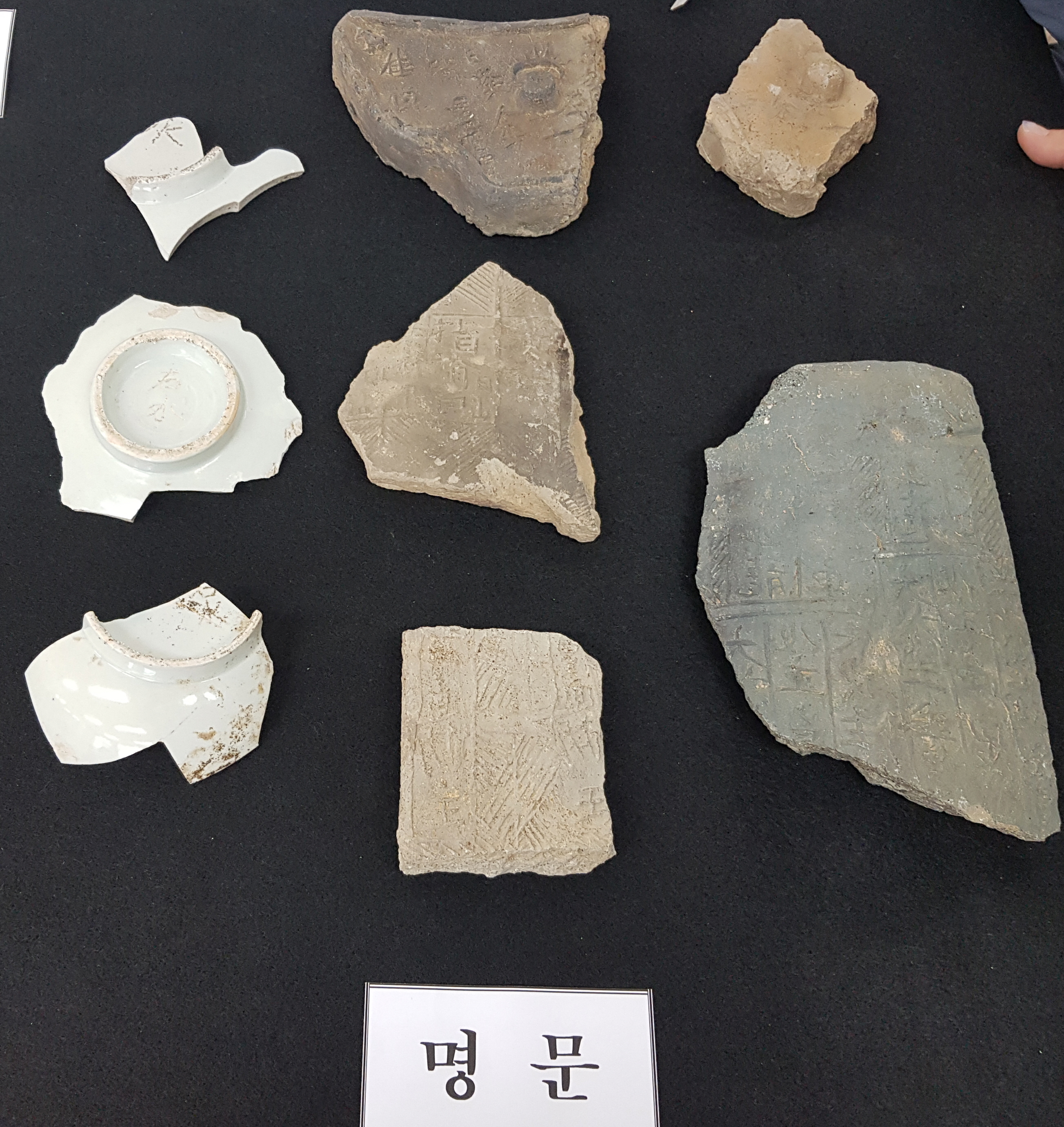 출토 유물로는 우수右水 라는 글자가 적힌 초기 백자를 비롯해 글자가 적힌 기와류, 상평통보를 포함한 동전류 등 수백 점이 있다.