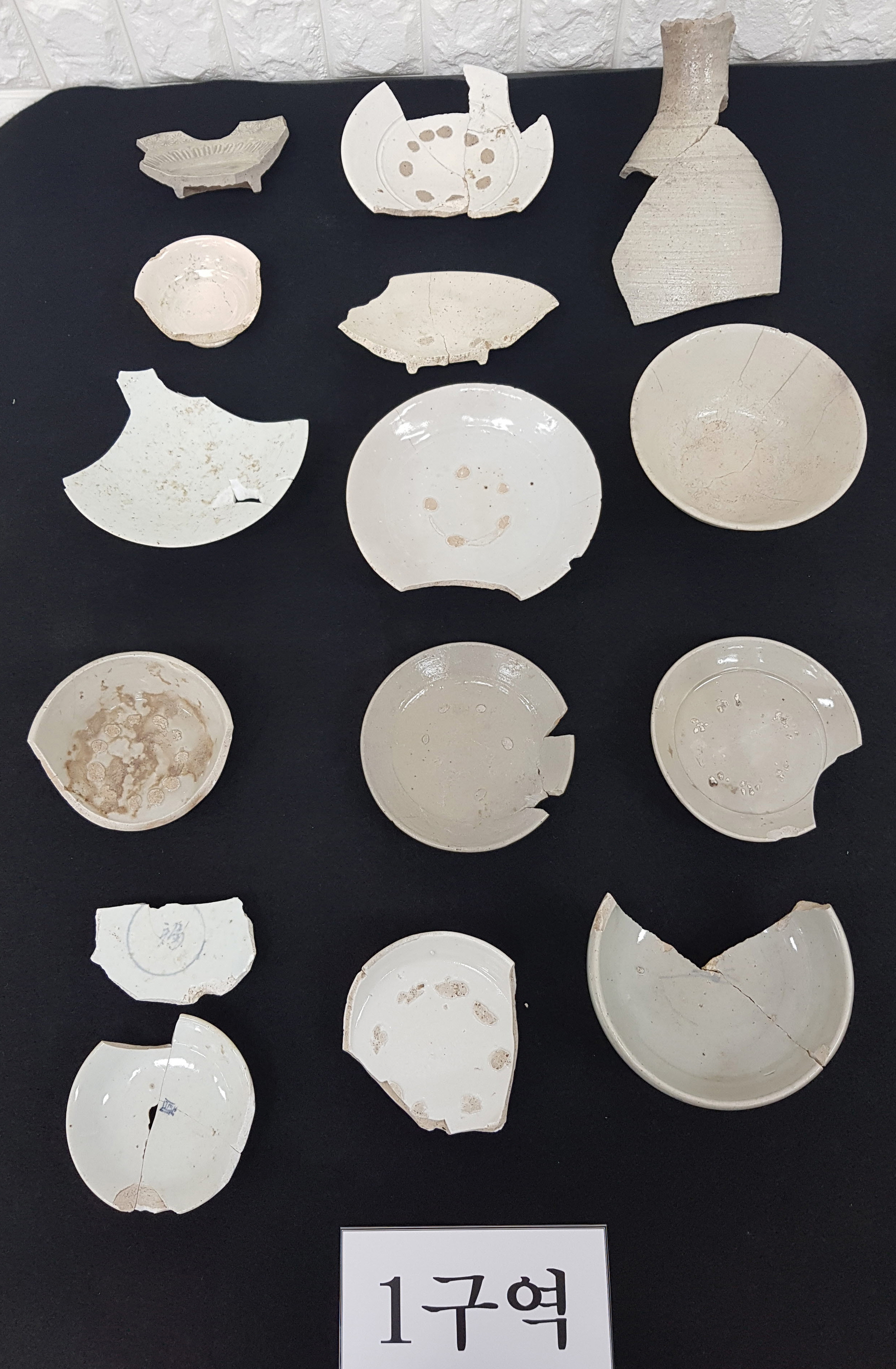 출토 유물로는 우수右水 라는 글자가 적힌 초기 백자를 비롯해 글자가 적힌 기와류, 상평통보를 포함한 동전류 등 수백 점이 있다.
