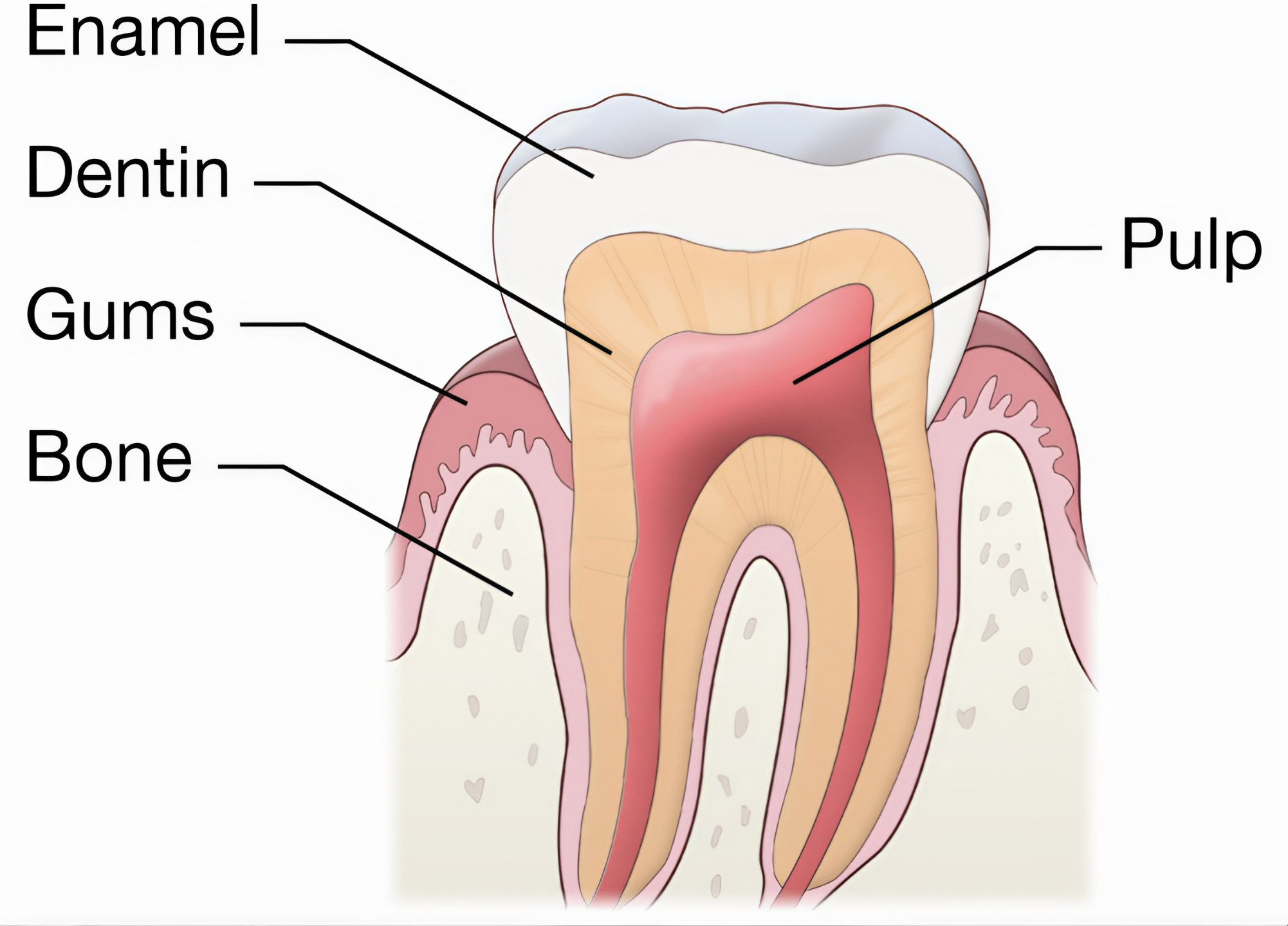 치아는 구조를 보면 에나멜층이 가장 바깥에서 둘러싼 모습을 하는데
