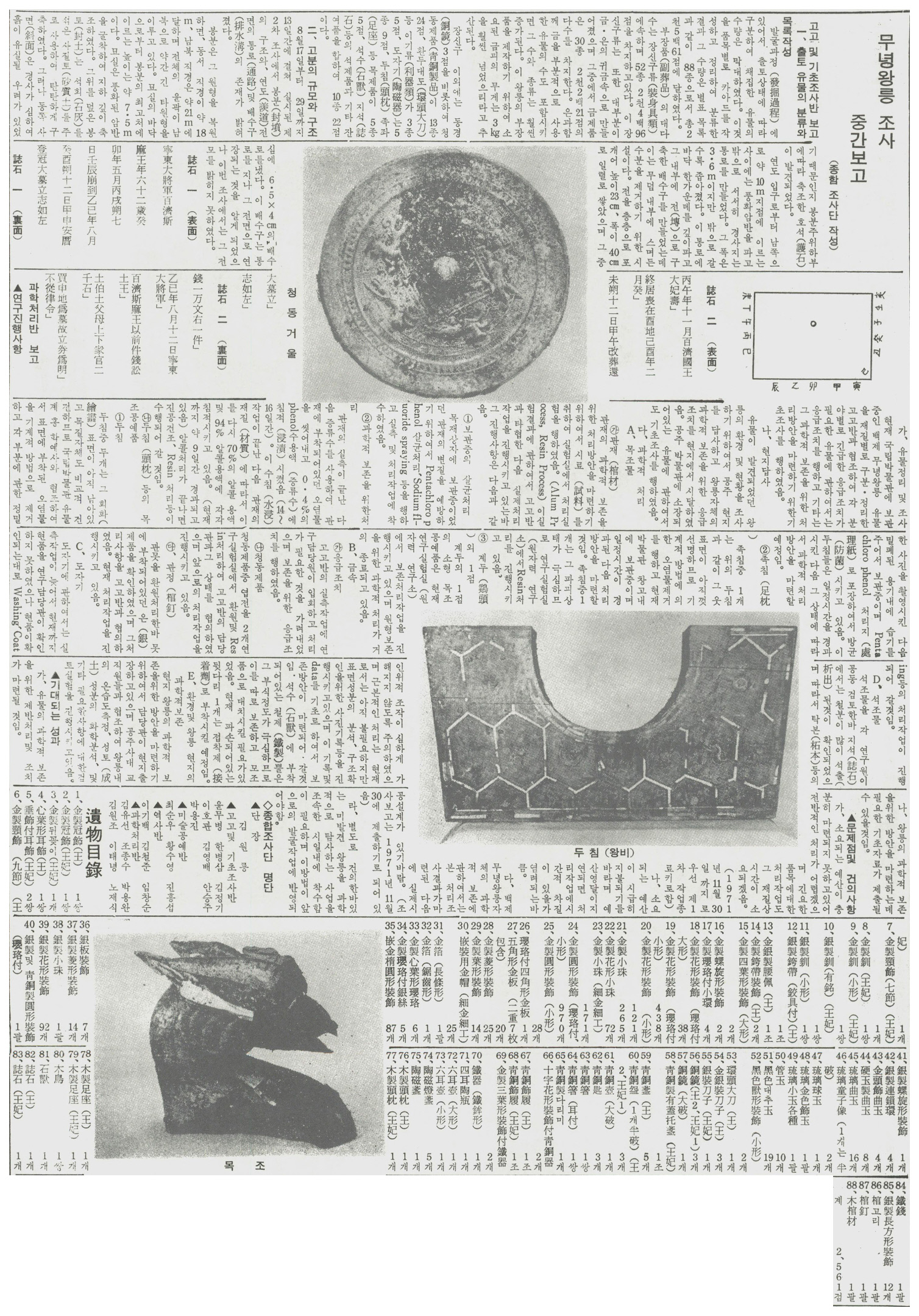 다, 백제 무녕왕릉 자체의 과학적 보존에 관하여서는 본 처리조사결과가 마련된 다음에 실제 시공설계가 있기 바람.(조사보고는 1971년 11월30일에 제출하기로 되어 있음)