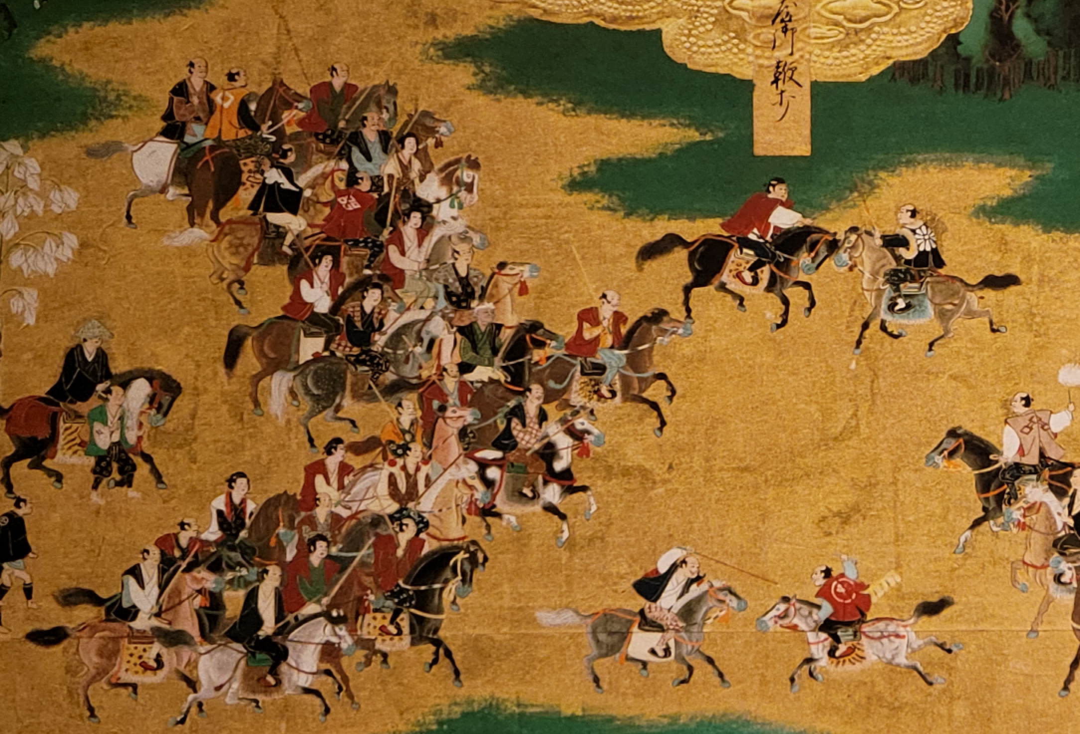 이 두 말을 탄 무사들이 전쟁 중 서로 상대 진지에 일착을 하러 다투는 이야기가 나오는데 상당히 유명한 장면이다.
