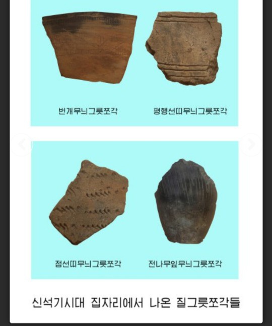 이번에 발굴된 유적 유물은 신석기시대 후기(6 000년전)와 청동기시대(4000년전)에 해당하는 것들이다.