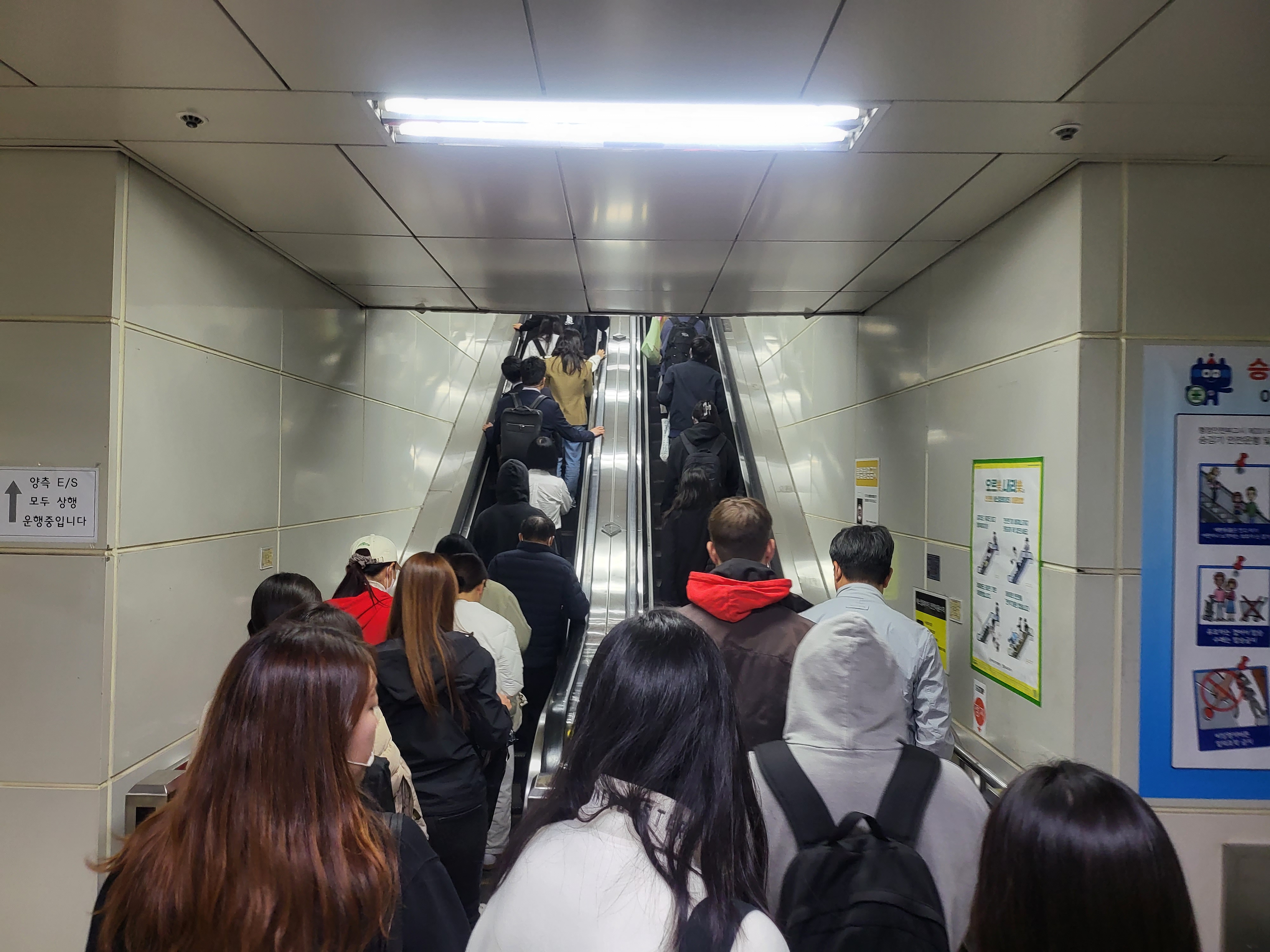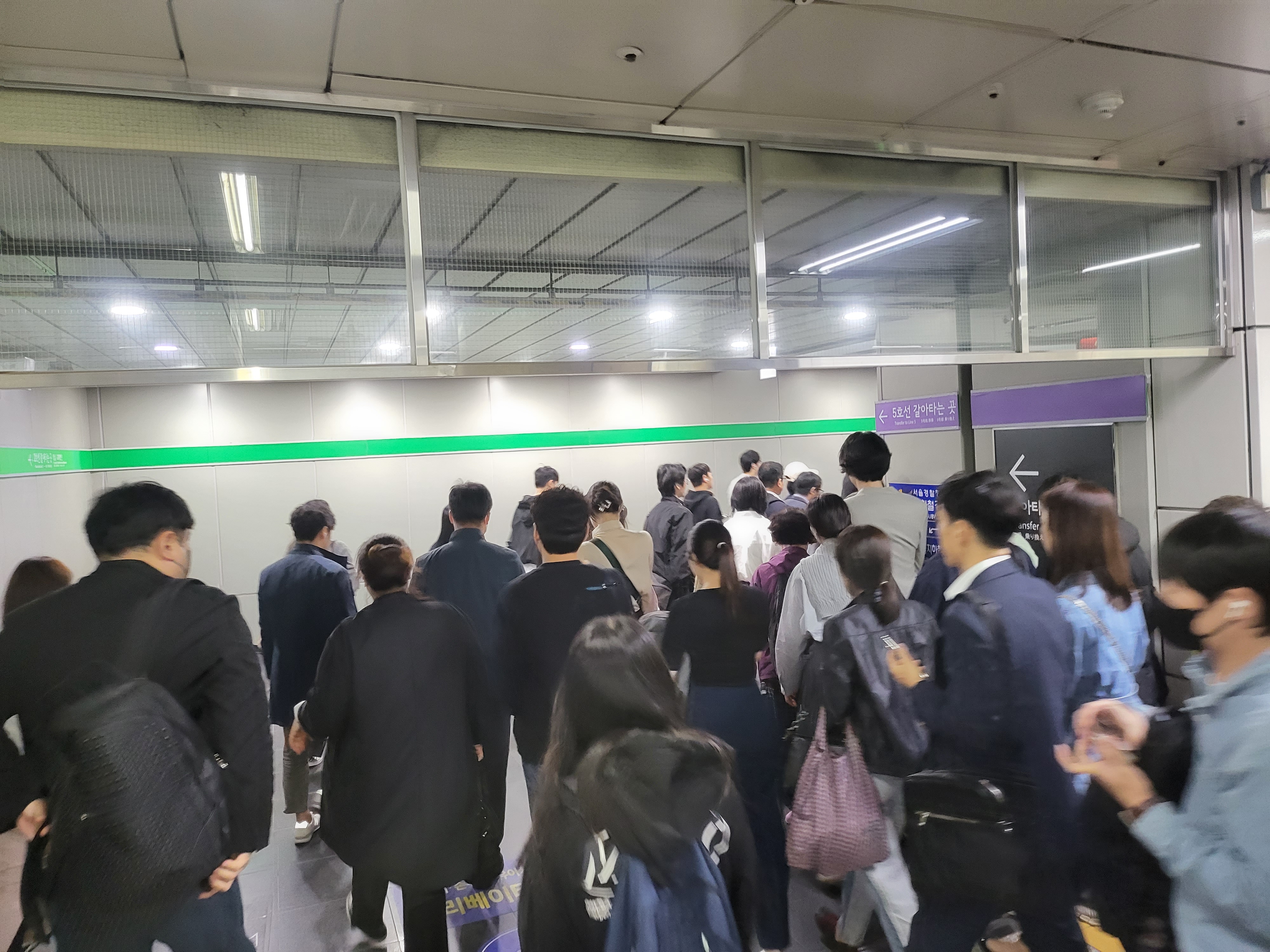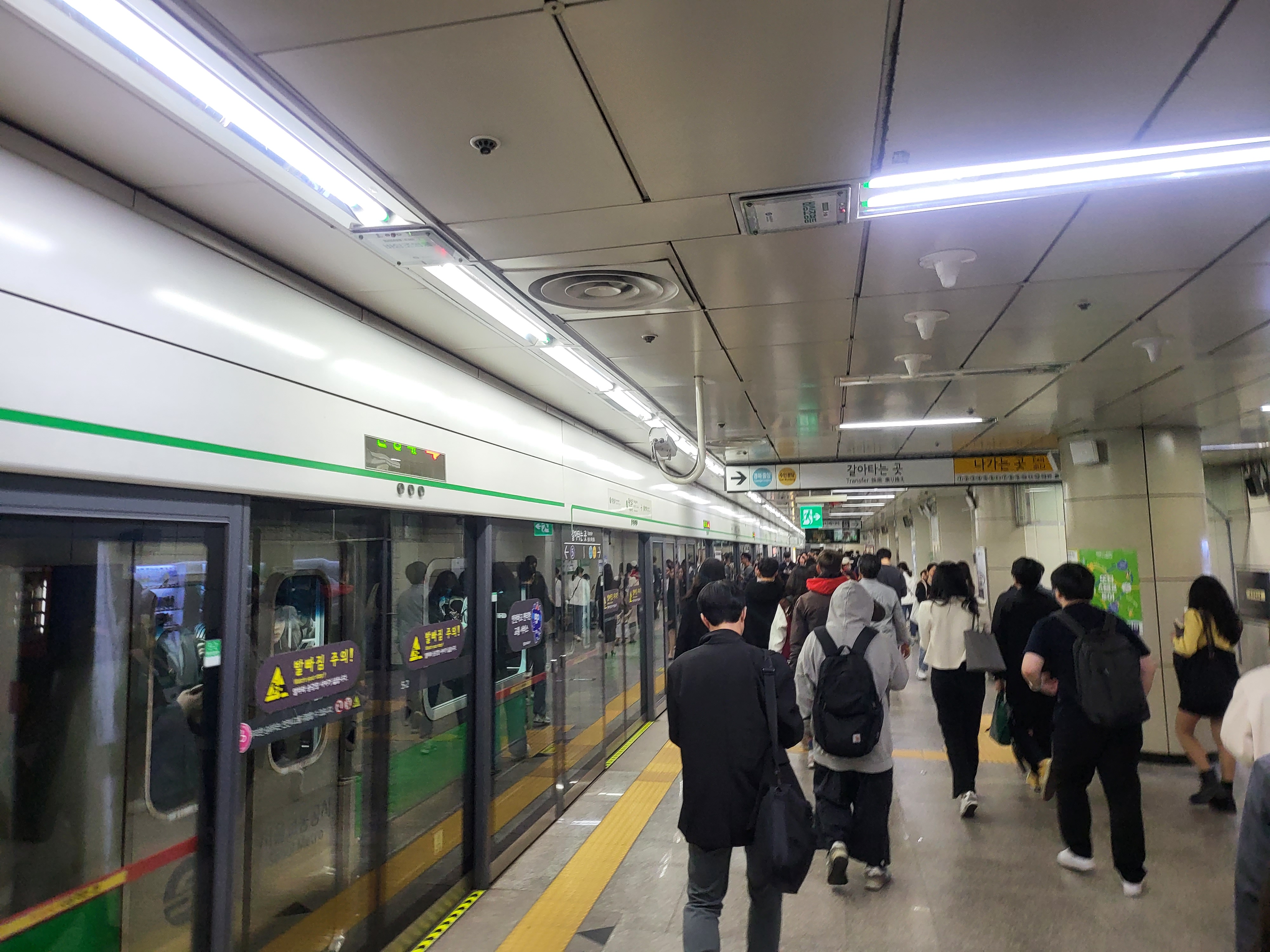 지하철 이용해서 강남을 가는데 승객이 열라 많음