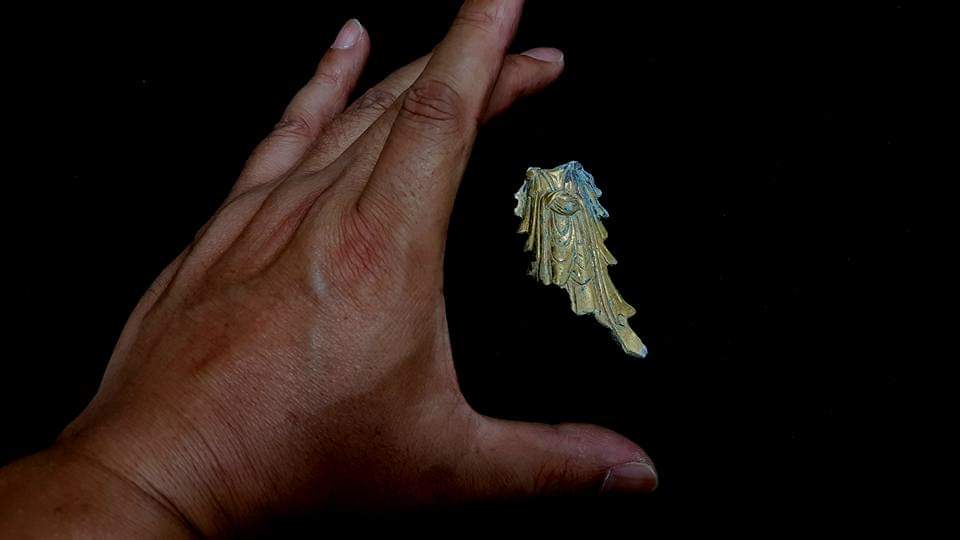 A fragment of guilt bronze bodhisattva from late baekje dynasty period, excavated from north buyeo city wall.
