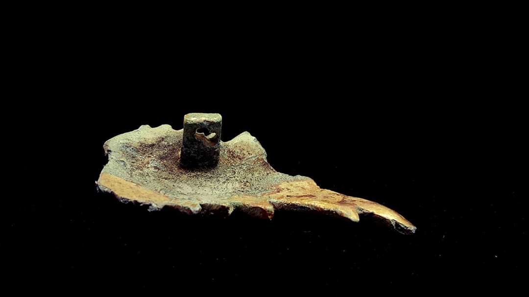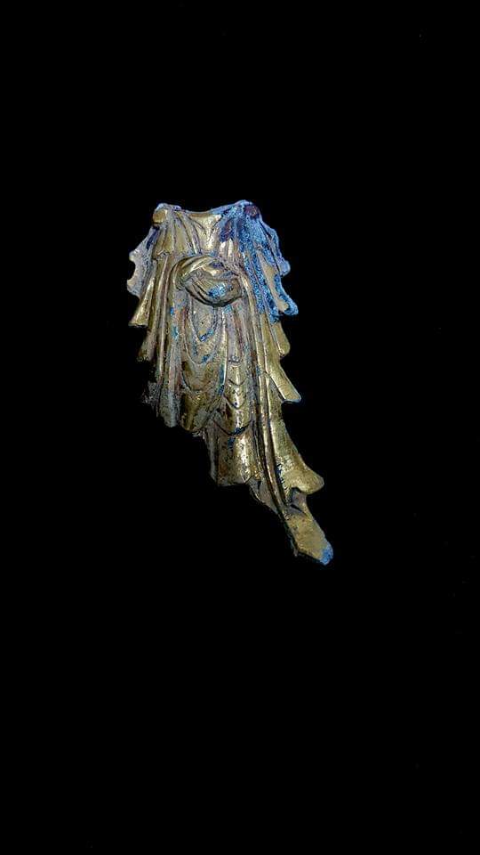 A fragment of guilt bronze bodhisattva from late baekje dynasty period, excavated from north buyeo city wall.