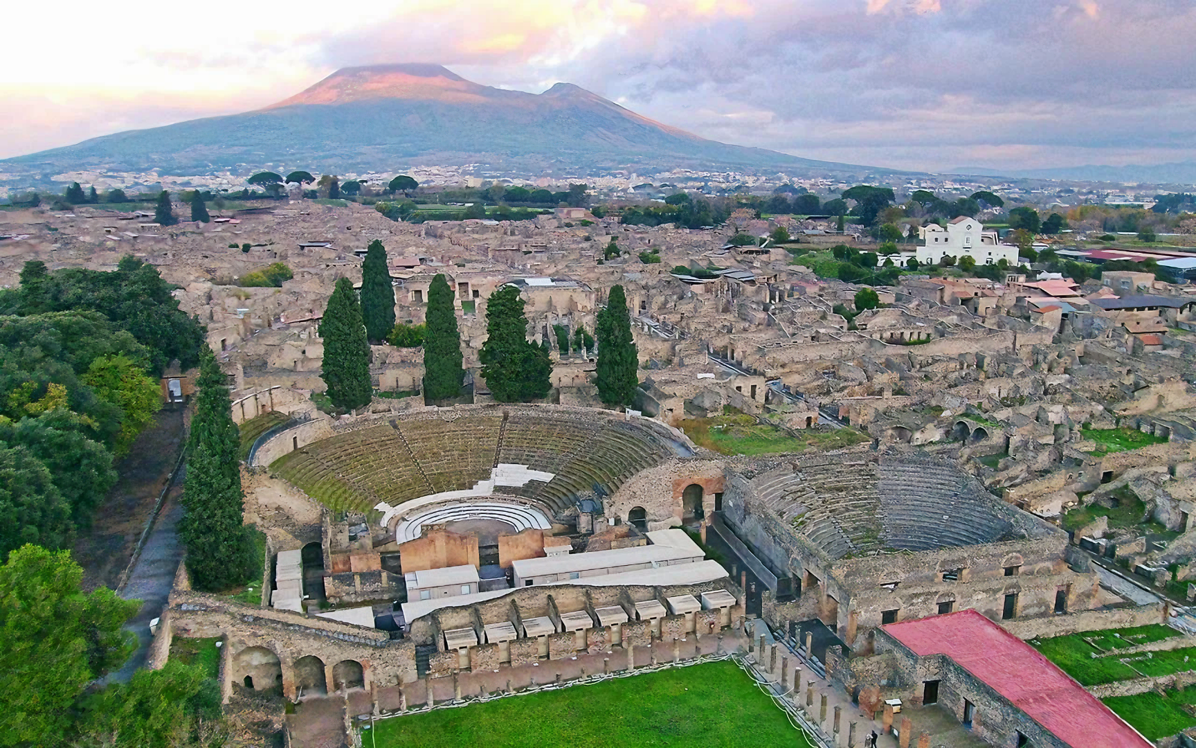 이 흔적들은 빌라 임페리알레Villa Imperiale에서 콰드리포르티코 데이 테아트로Quadriportico dei Teatri까지 이어지는 도시 남부 지역인 인술라 메리디오날리스Insula Meridionalis에서 최근 발굴됐다.