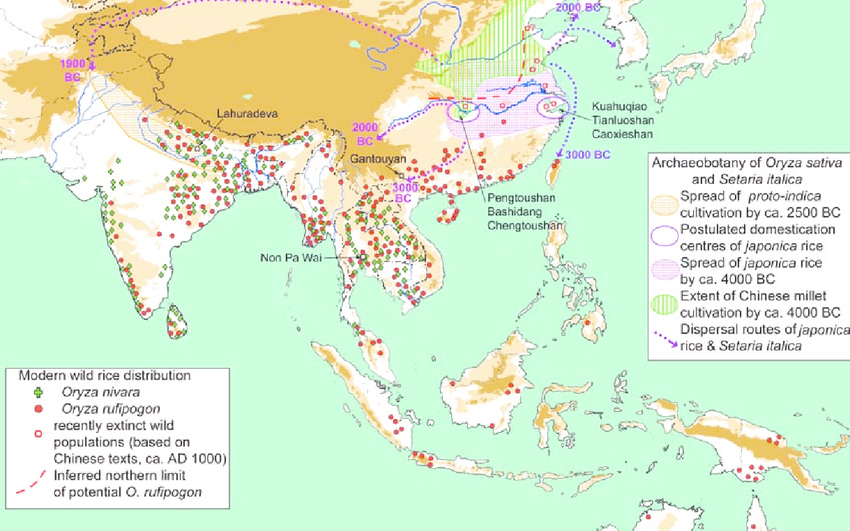 정확히는 베트남과 광동성 일대 어딘가의 야생벼가 경작되기 시작했고,
