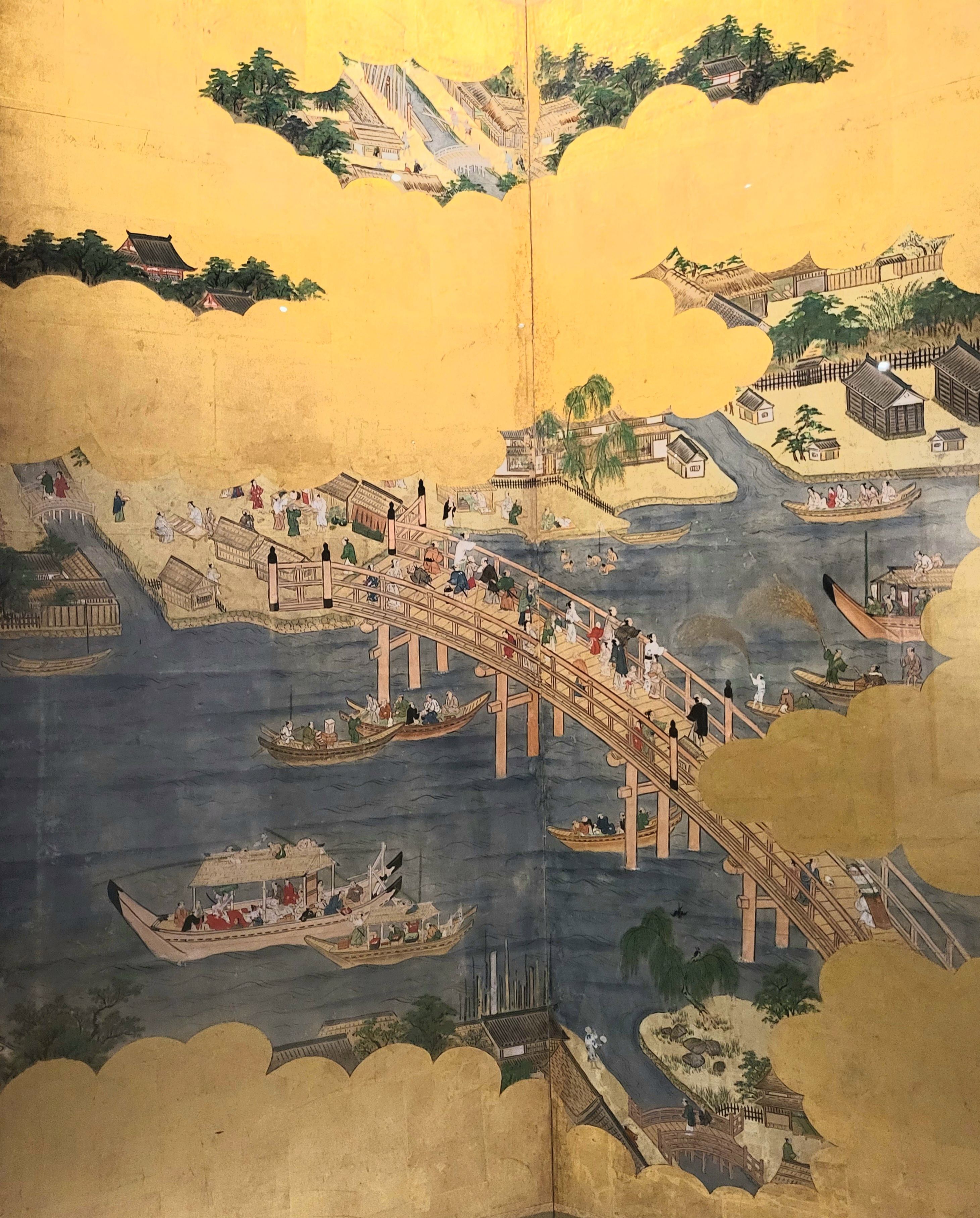 료고쿠바시에서 센소지淺草寺 부근까지 스미다 강 양안兩岸을 그린 병풍이다.