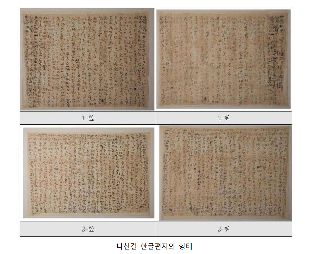 문화재청이 보물 지정을 예고한 나신걸 한글편지는 500년 전 언문이라, 여기서는 자판을 지원하지 못해서 긁어다가 사진으로 제시하고 대신 그 현대어 옮김을 첨부한다.