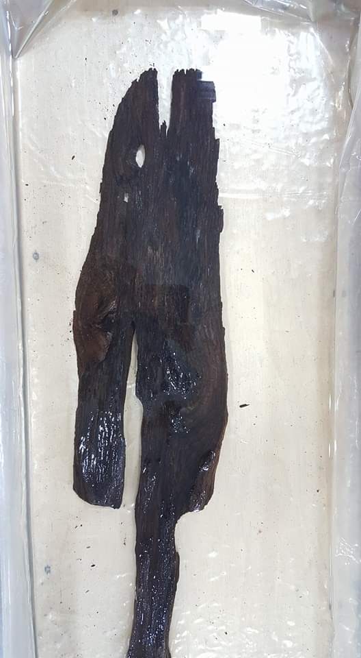 궁남지 인근 부여 화지산 유적 백제시대 건물터 인근에서 발굴한 나무삽 열한자루가 보존처리를 위해 식염수에 잠수 중이다.