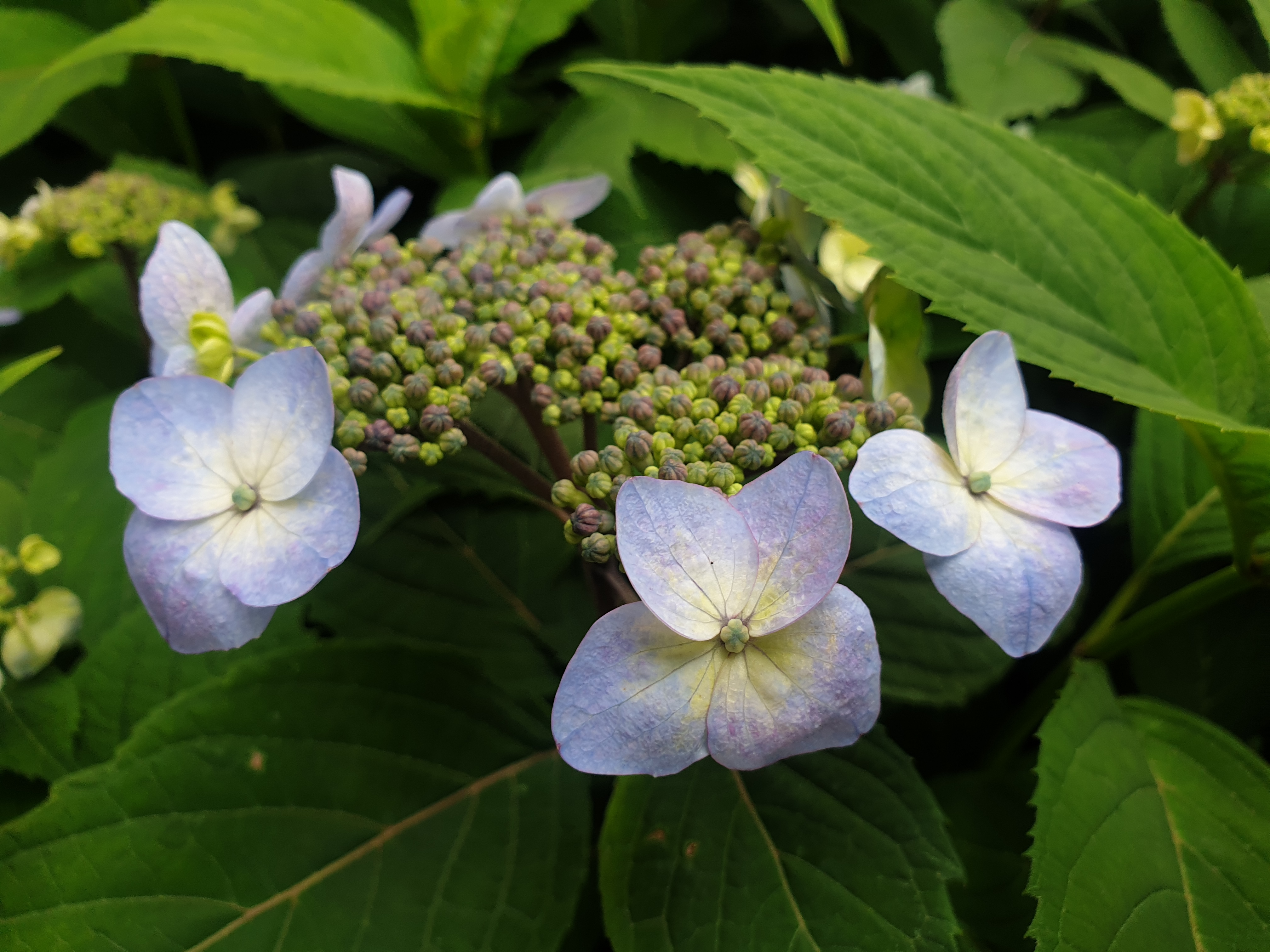 수국은 이제 시작인듯 그 변화를 줄곧 지킬 요량으로 그 초기발생 단계를 포착하며