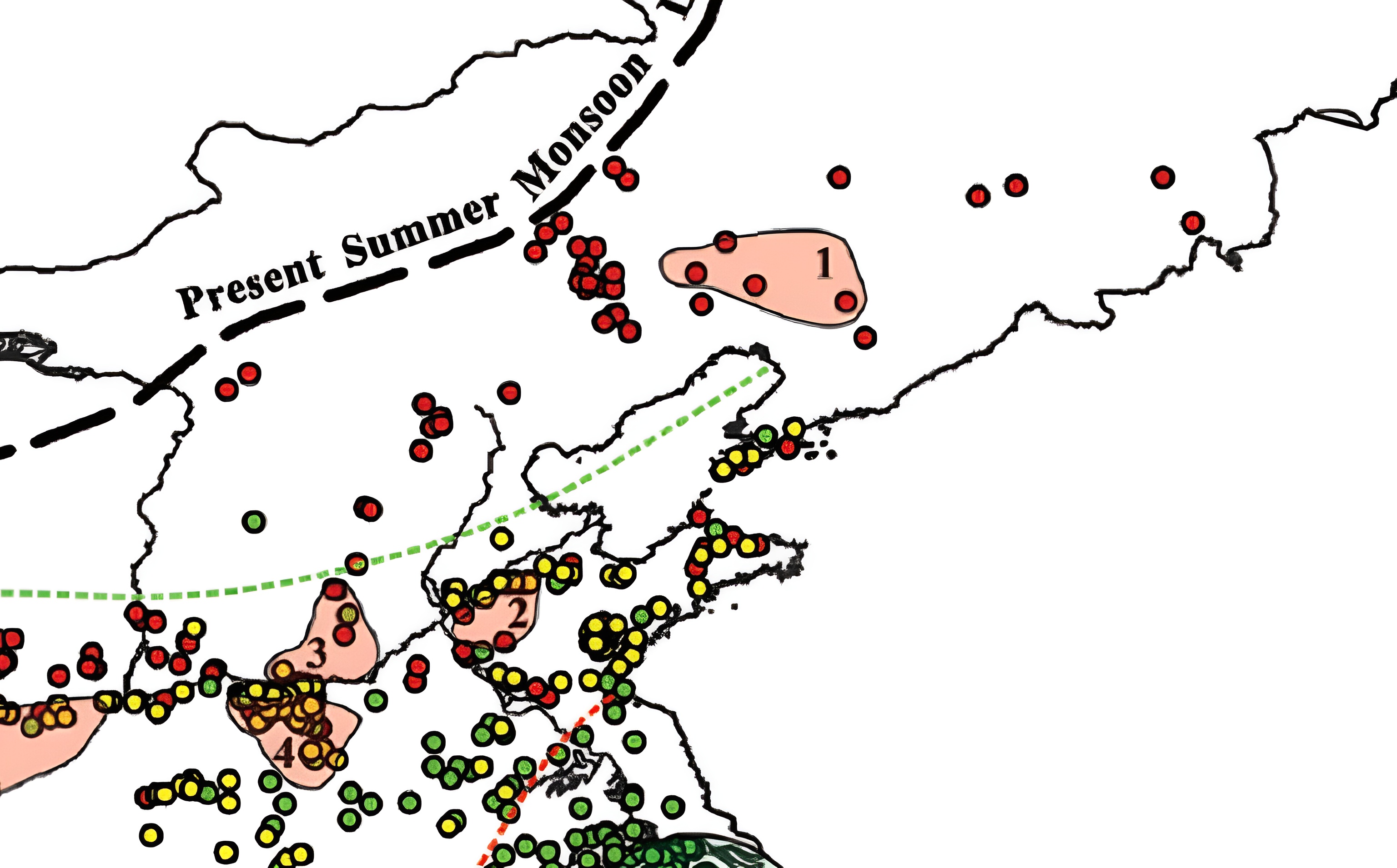 반면에 발해만 북부일대와 남만주, 그리고 요서일대는 도작이 없다.