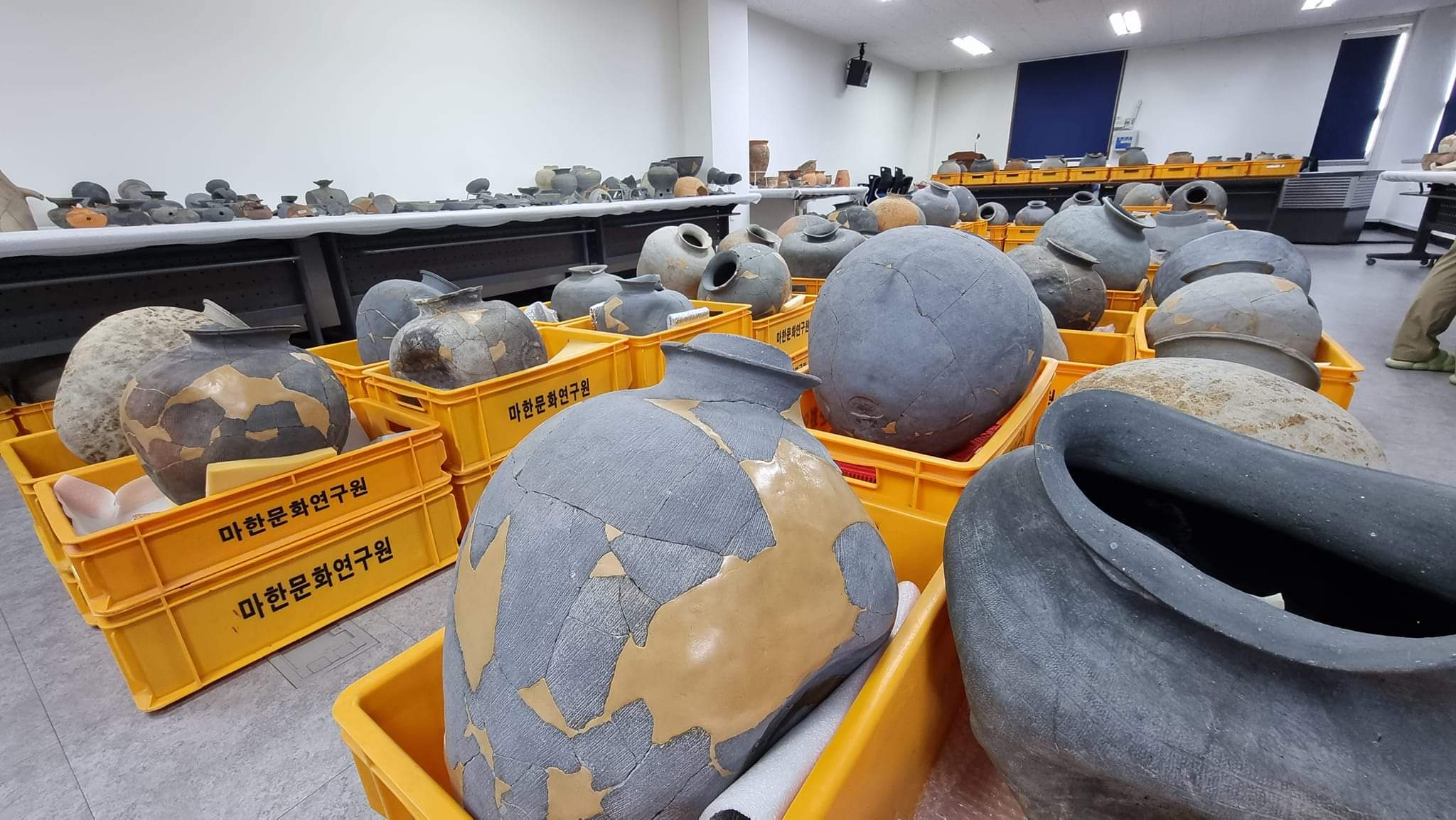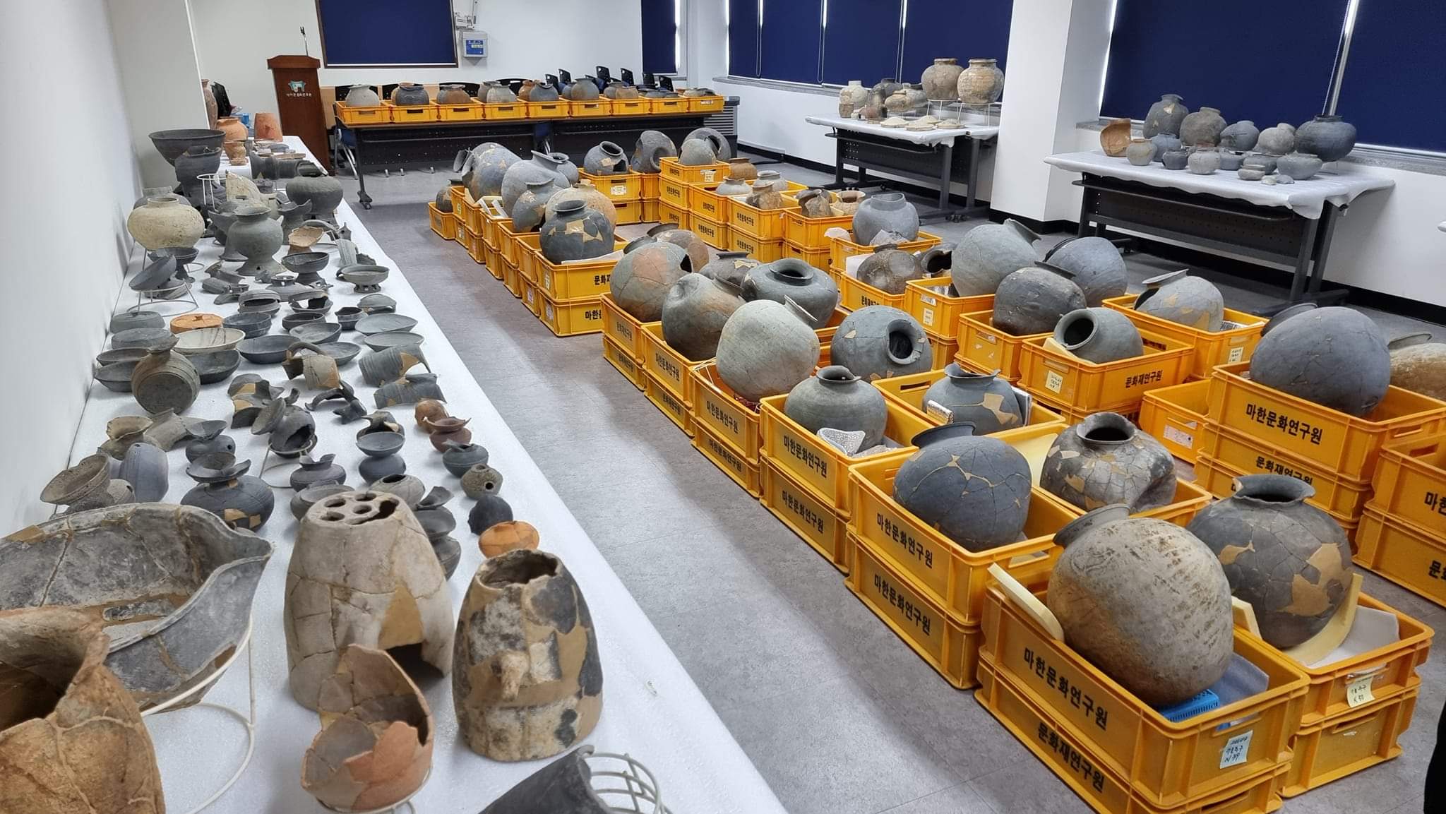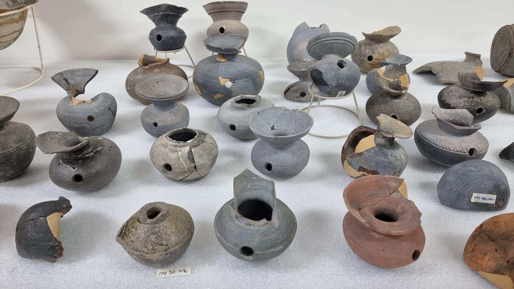 현지제작한 토기와 함께 백제, 가야, 신라, 일본열도 계통 토기가 잔뜩 섞여 있다.