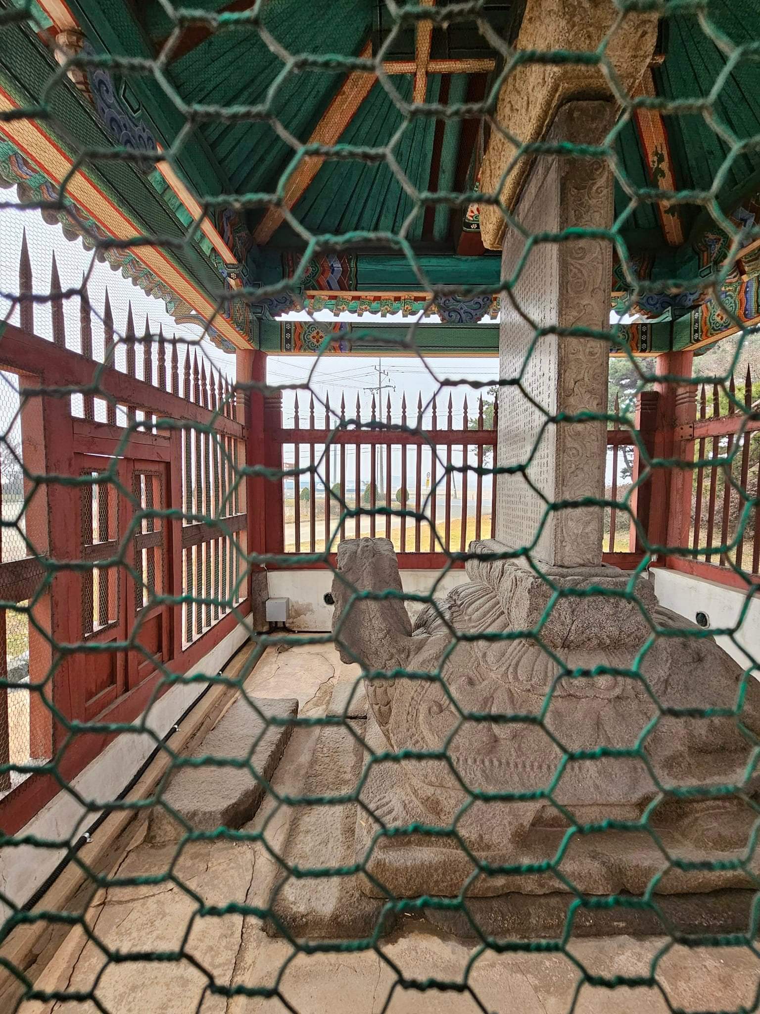 비각을 세운 건 그렇다 쳐도 웬 철망을 빽빽이도 둘러 도대체 비의 전모를 볼 수 없게 만들어놨다.