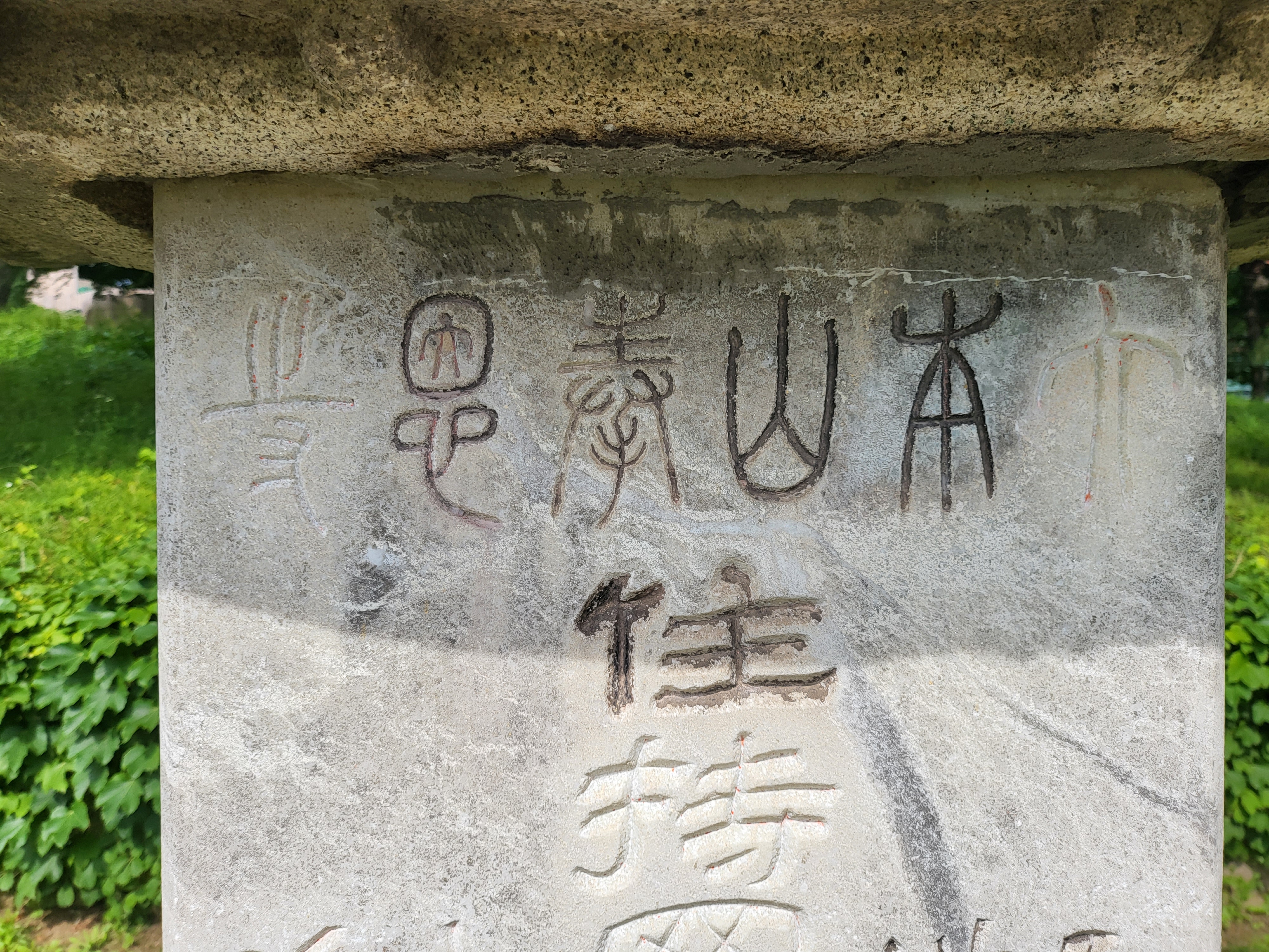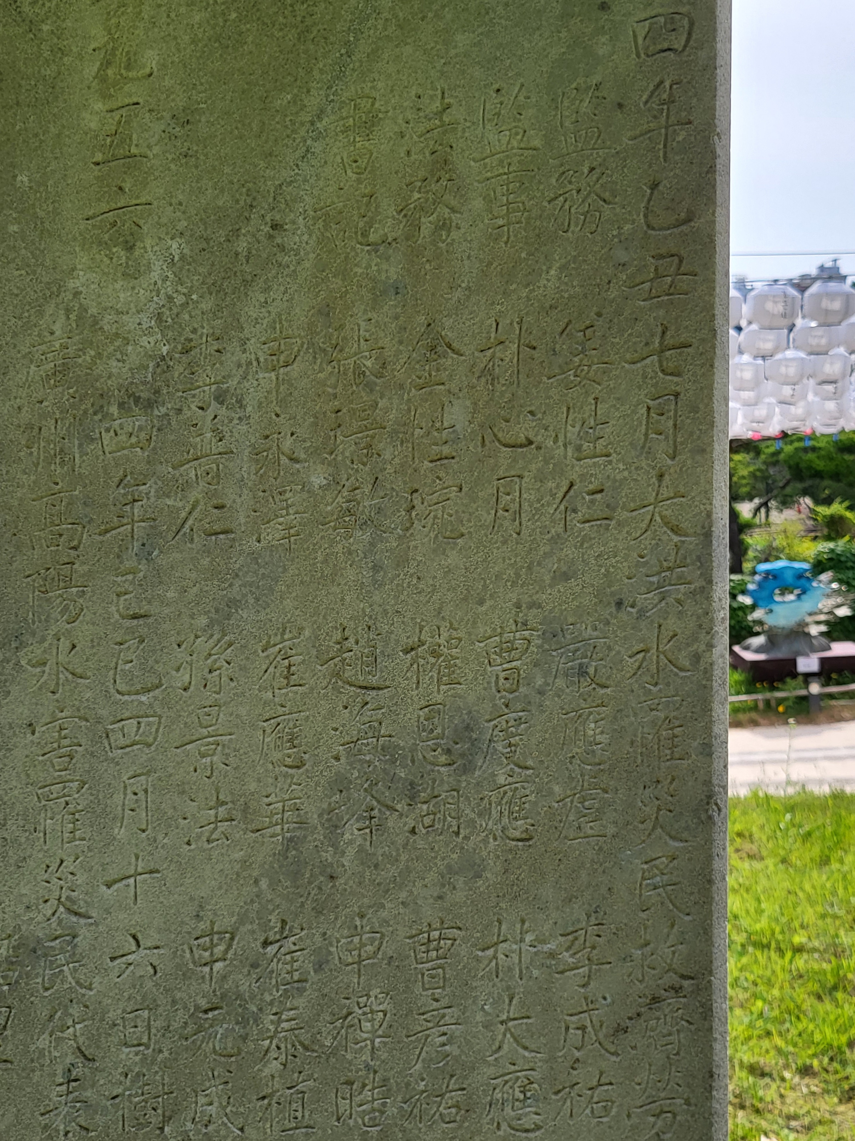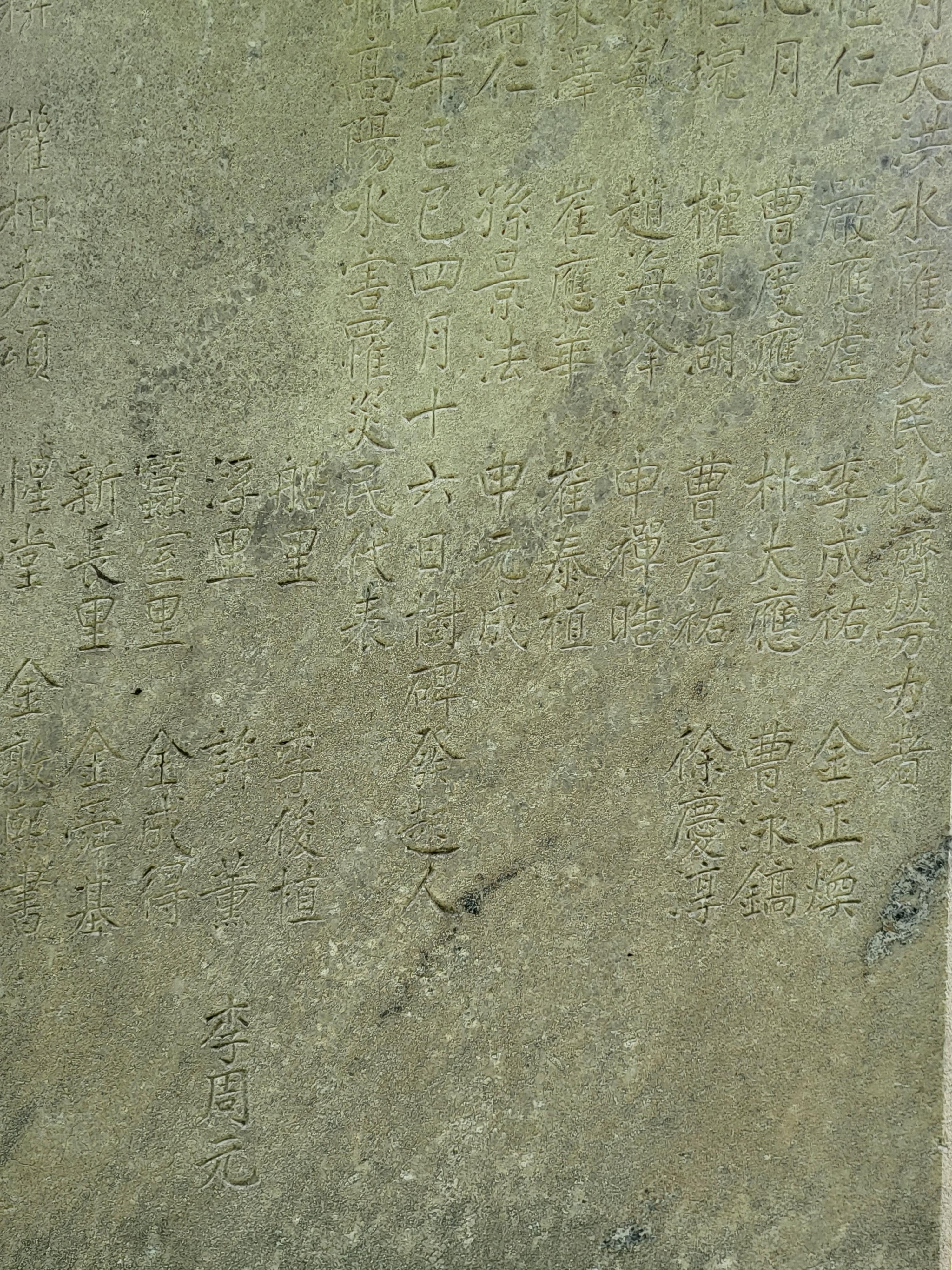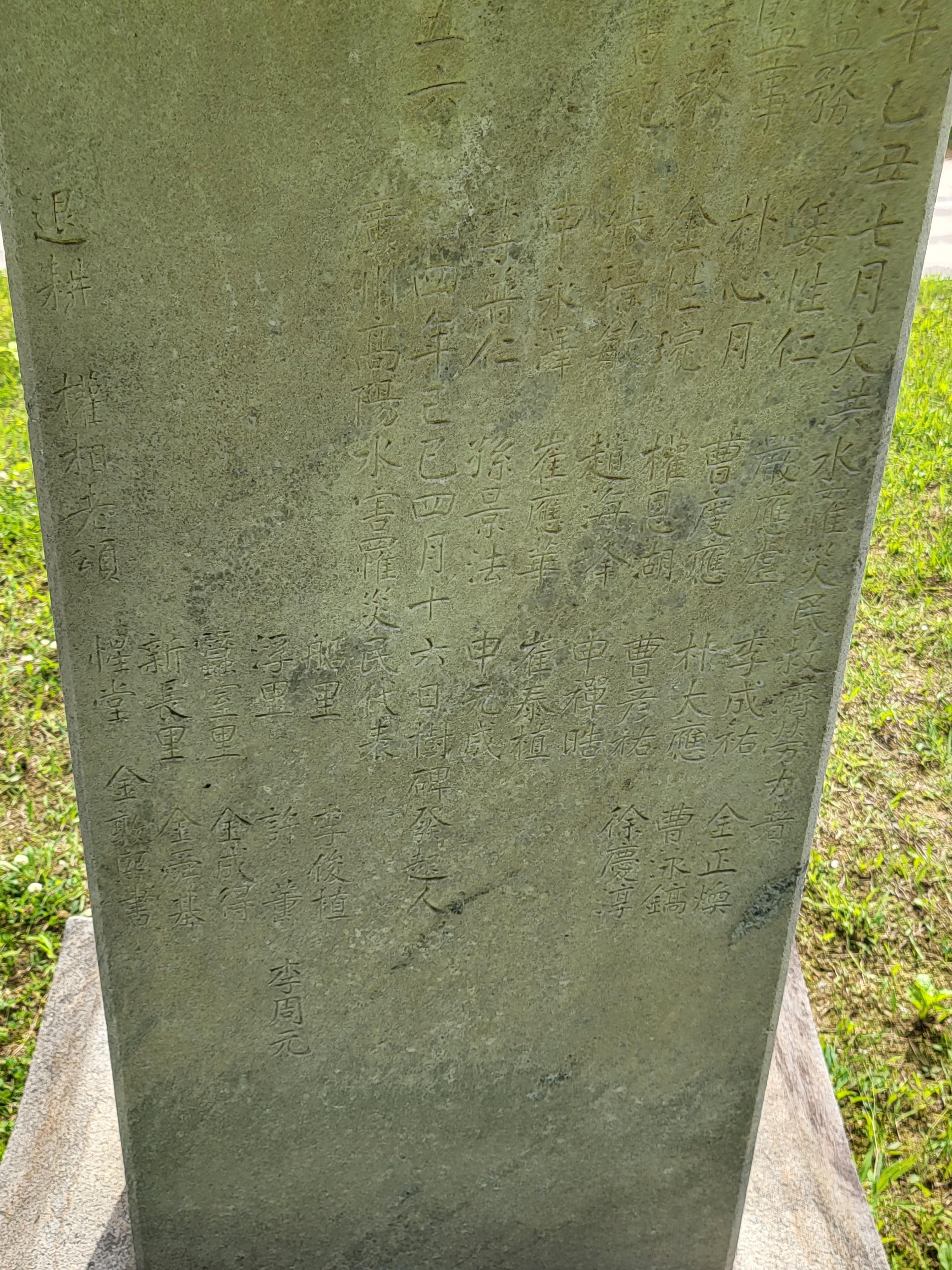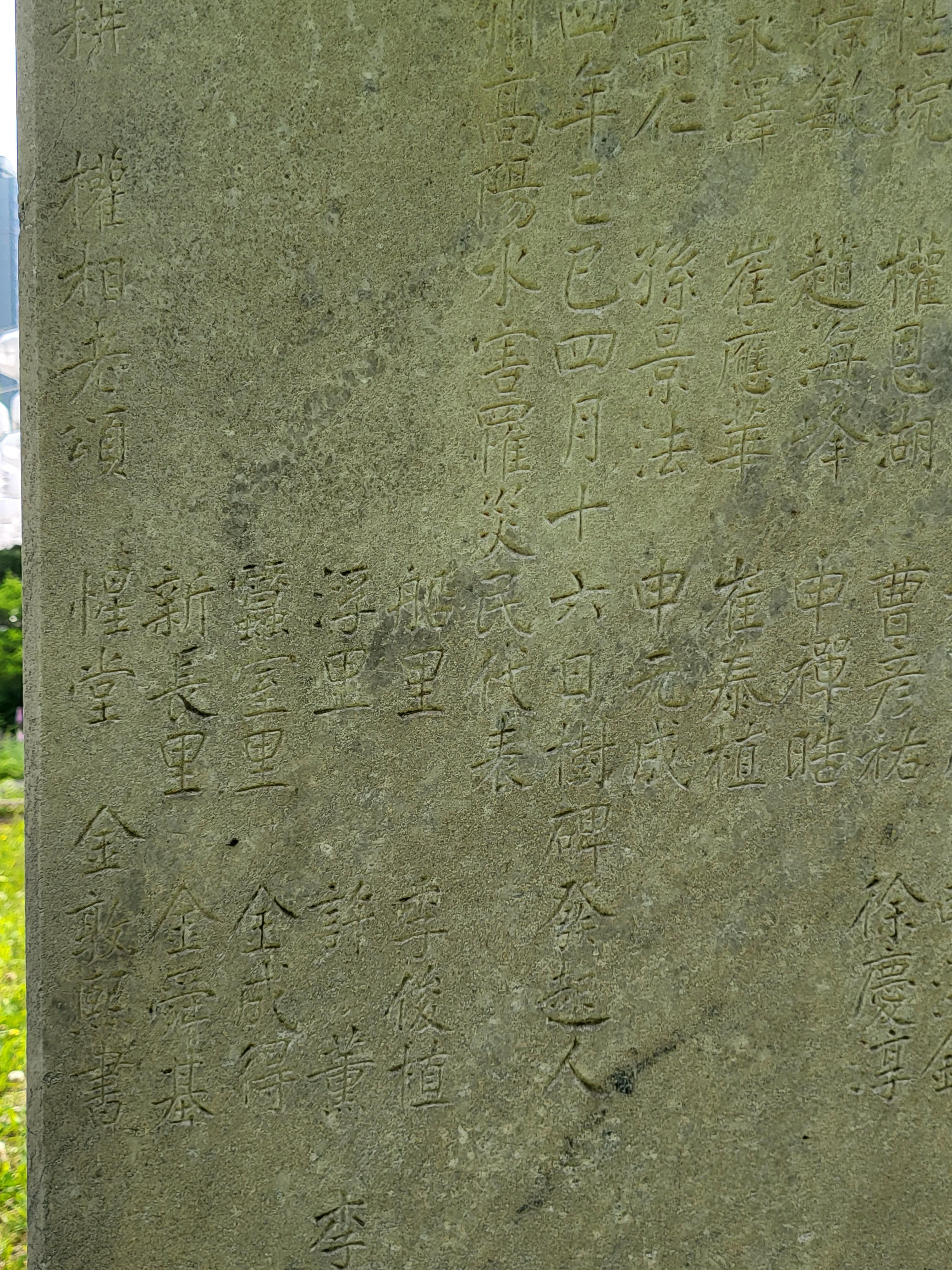 그 좌측에는 ‘乙丑七月 洪水懷襄 船浮蠶室 變桑而滄[을축 7월 홍수회양 선부잠실]’, 우측에는 ‘七百八人 呼號蒼黃 我師慈濟 德不可忘[칠백팔인 호호창황 아사자제 덕불가망]’이라고 썼다.