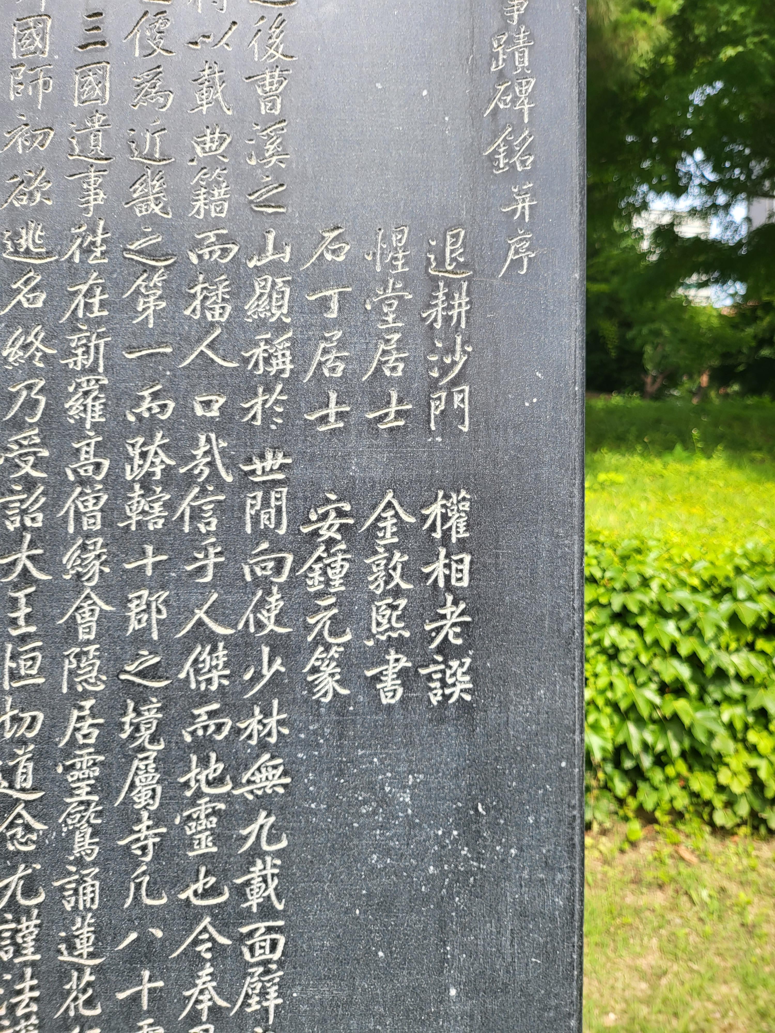 결국 나청호 대선사가 을축년 대홍수 이재민들을 구제한 일을 찬양하는 내용인데, 찬양하는 글 자체는 퇴경退耕 권상로權相老(1879~1965)가 송頌이라는 형식으로 짓고 그것을 성당惺堂 김돈희金敦熙(1871~1937)가 쓴 작은 글씨가 새겨져 있다.
