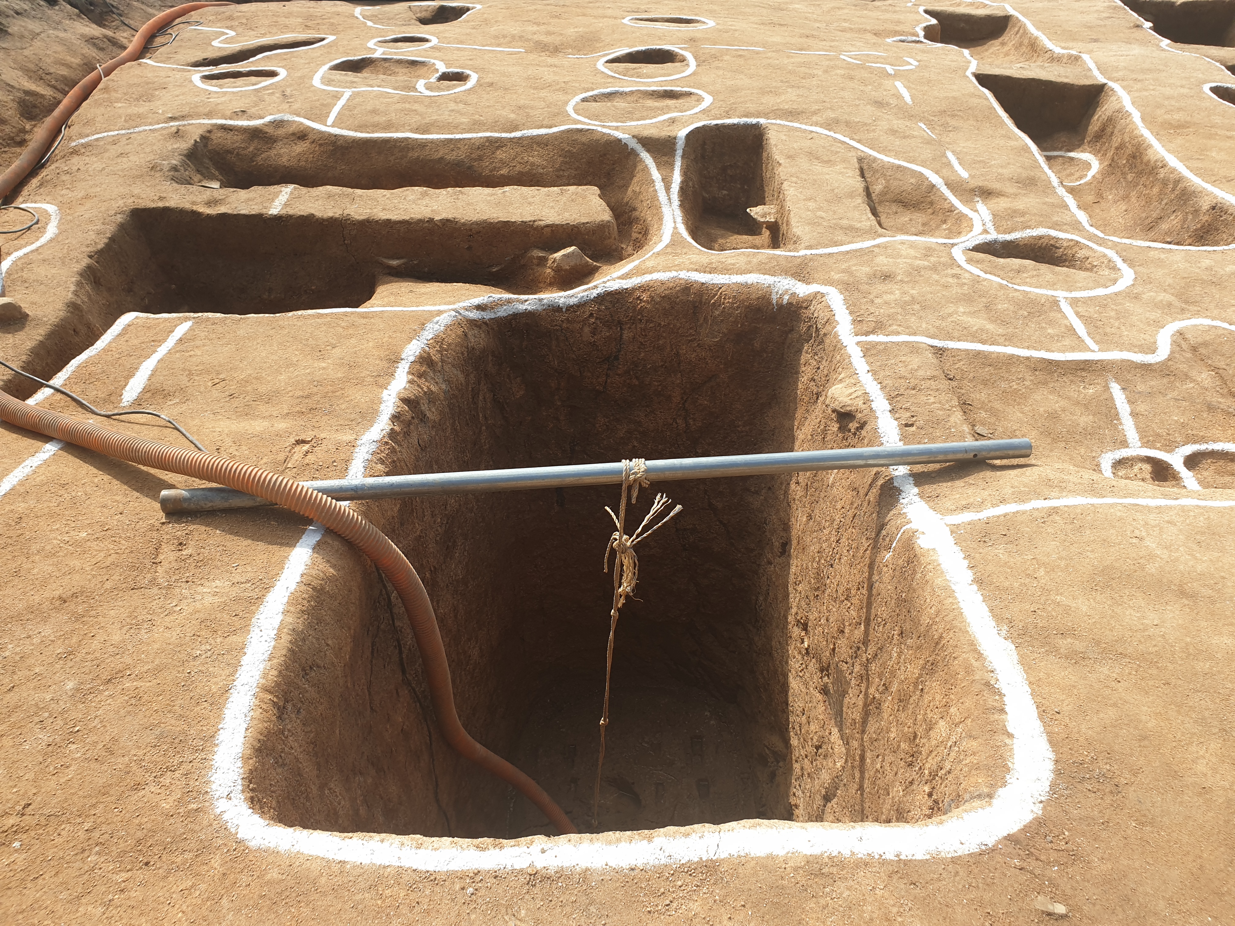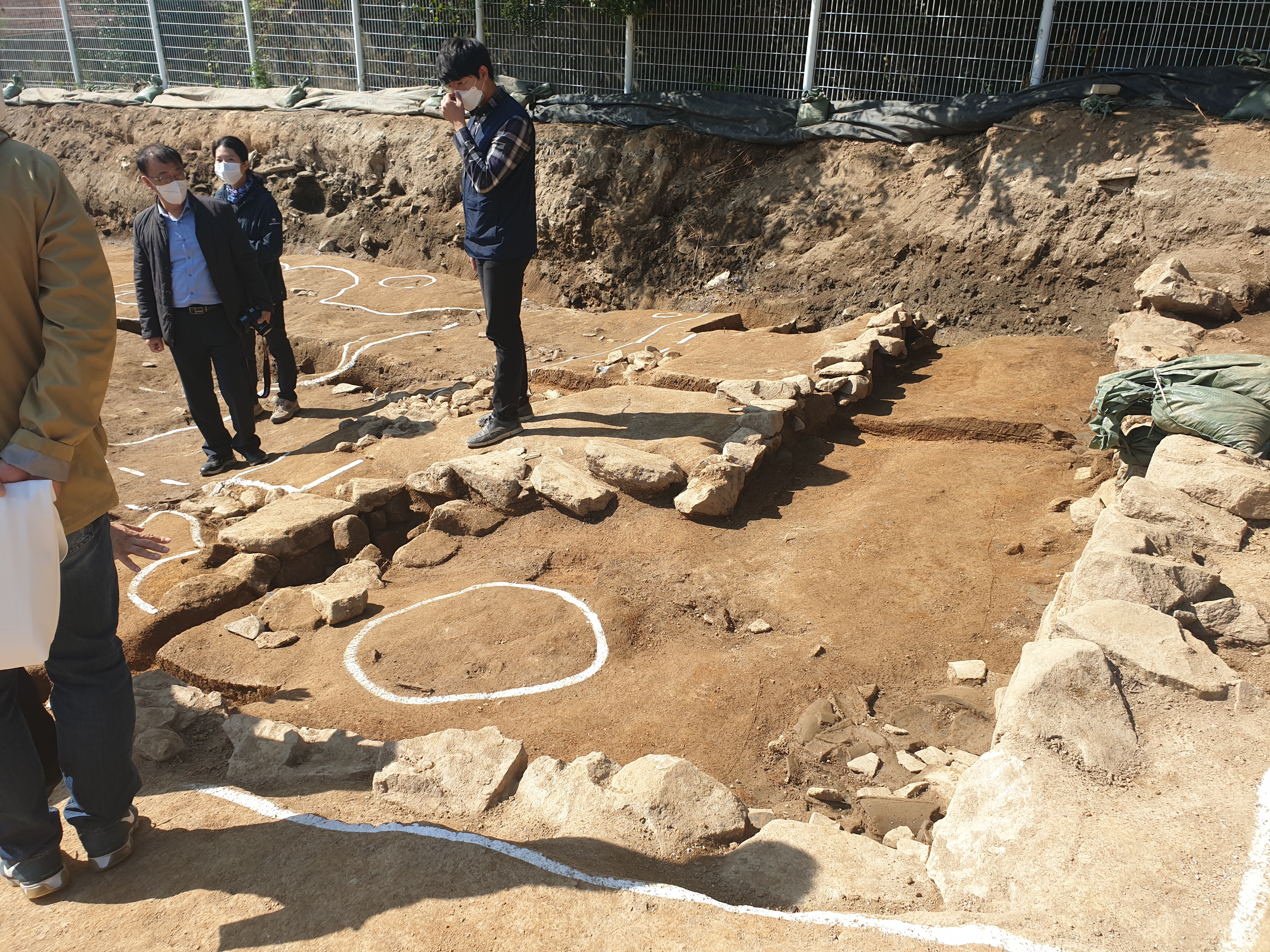 문제는 저 동편 건물지 앞쪽에 깊이 3미터 정도에 이르는 큰 직사각형 구덩이를 팠다는 점이다. 열라 깊어 언뜻 왕궁리 유적 똥통 같은 느낌을 주지만, 똥통이라면, 똥물을 빼내는 배수구가 있어야 할 텐데 그게 없는 점이 걸린다.