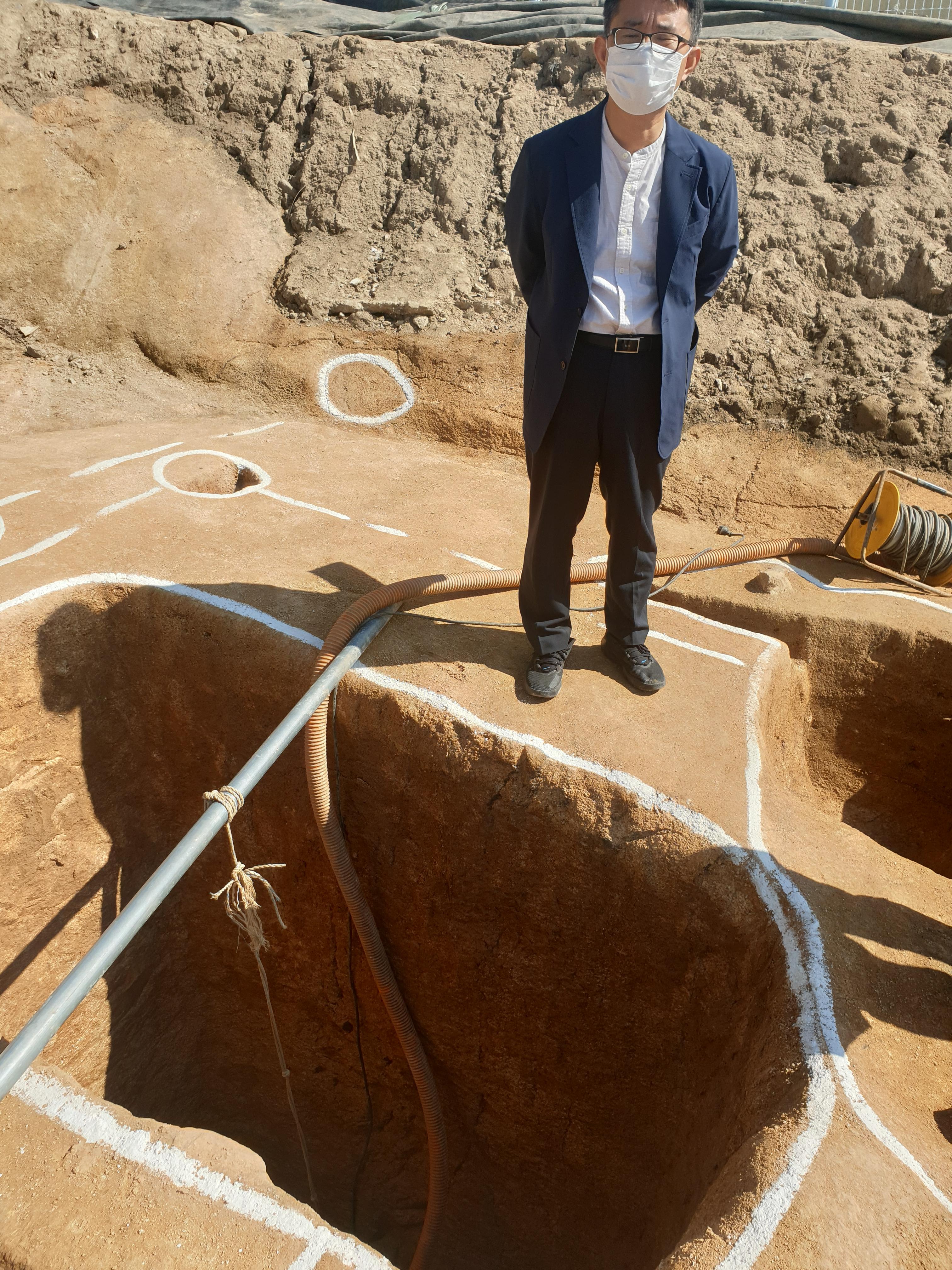문제는 저 동편 건물지 앞쪽에 깊이 3미터 정도에 이르는 큰 직사각형 구덩이를 팠다는 점이다. 열라 깊어 언뜻 왕궁리 유적 똥통 같은 느낌을 주지만, 똥통이라면, 똥물을 빼내는 배수구가 있어야 할 텐데 그게 없는 점이 걸린다.