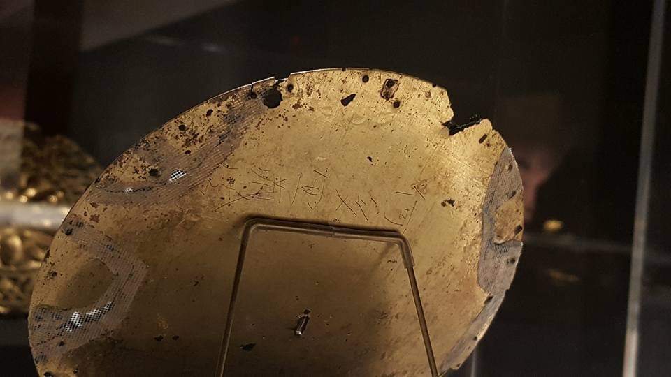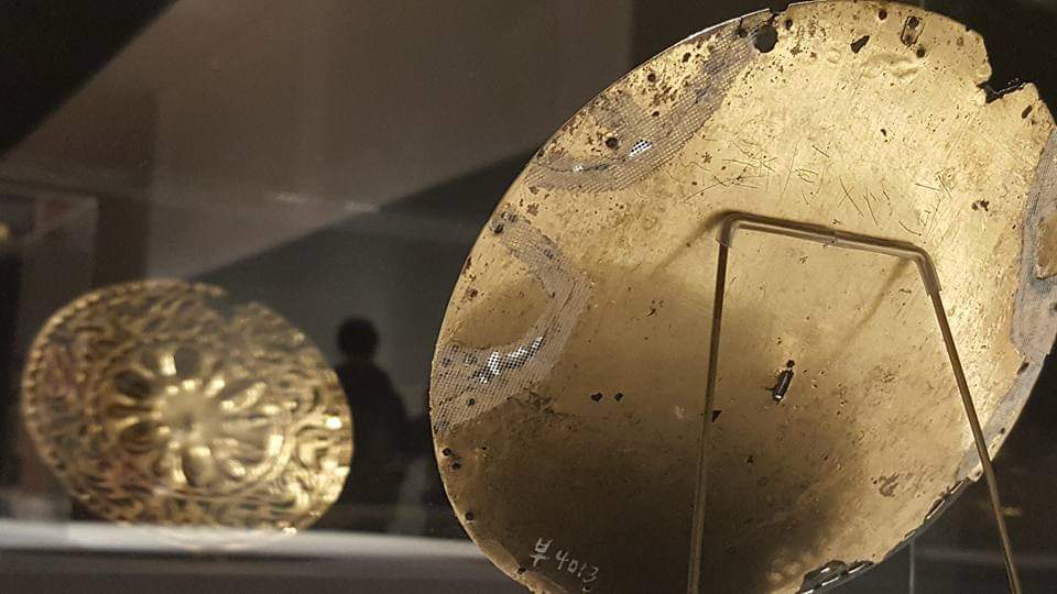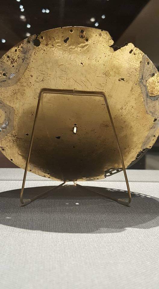 부소산성 출토 사비백제시대 금동광배다. 2017년 전시 모습인데 이리 하면 곤란하다. 현재도 이런 모습으로 전시가 계속 중인 듯 하다.