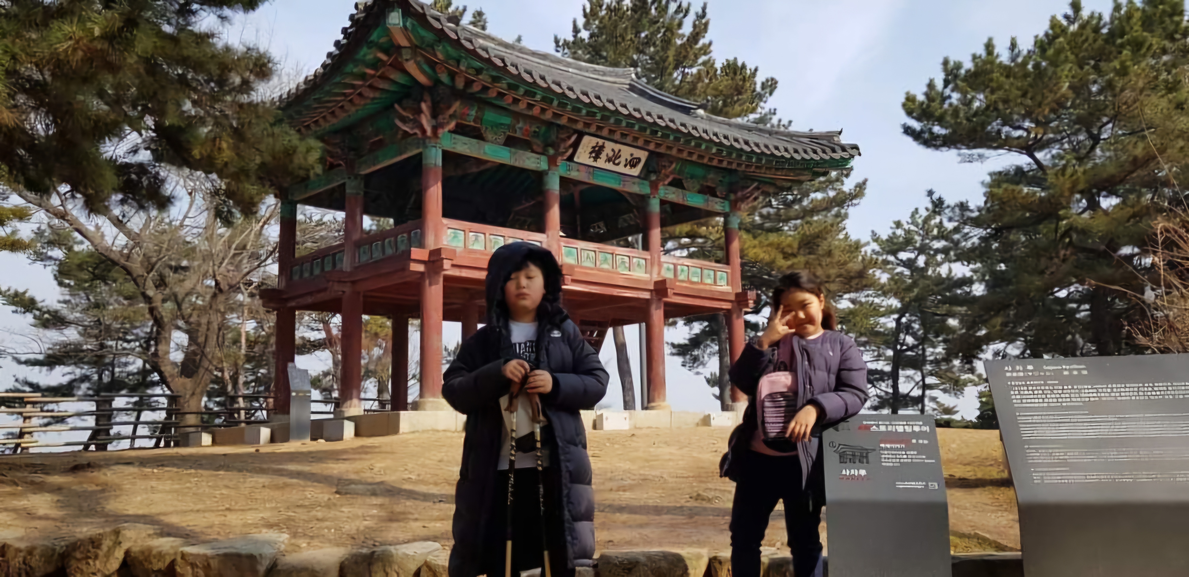사진에 부소산 가장 높은 곳에 희미하게 보이는 누각이 있는데, 사자루로 보인다.