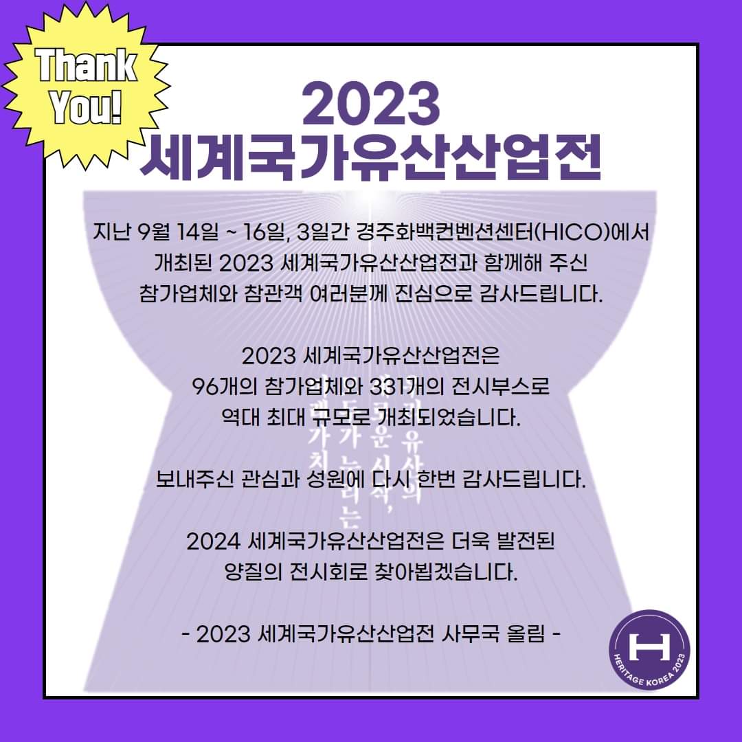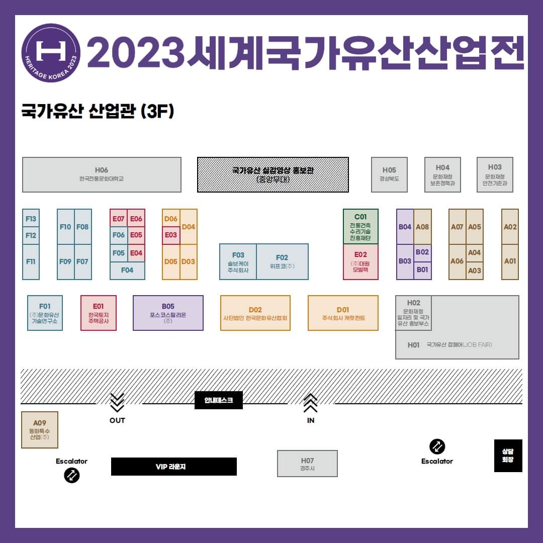 이번 2023 세계국가유산산업전이 열린 경주화백센터 그 메인 전시장 부스 구성이다.