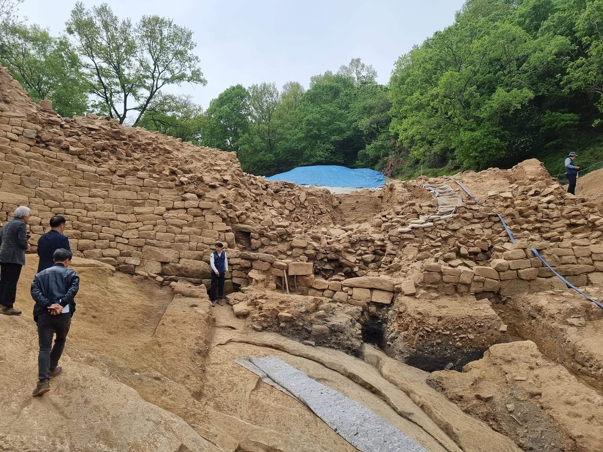 보통 산성 이런 구간에서는 그 출현하는 유구 양상을 보면 일정한 패턴이 있어, 성벽 안쪽에다가 일단 물을 연못에서 모았다가 배수구를 통해 바깥으로 빼내는 구조라,
